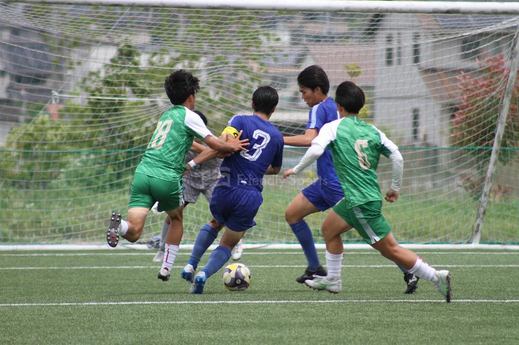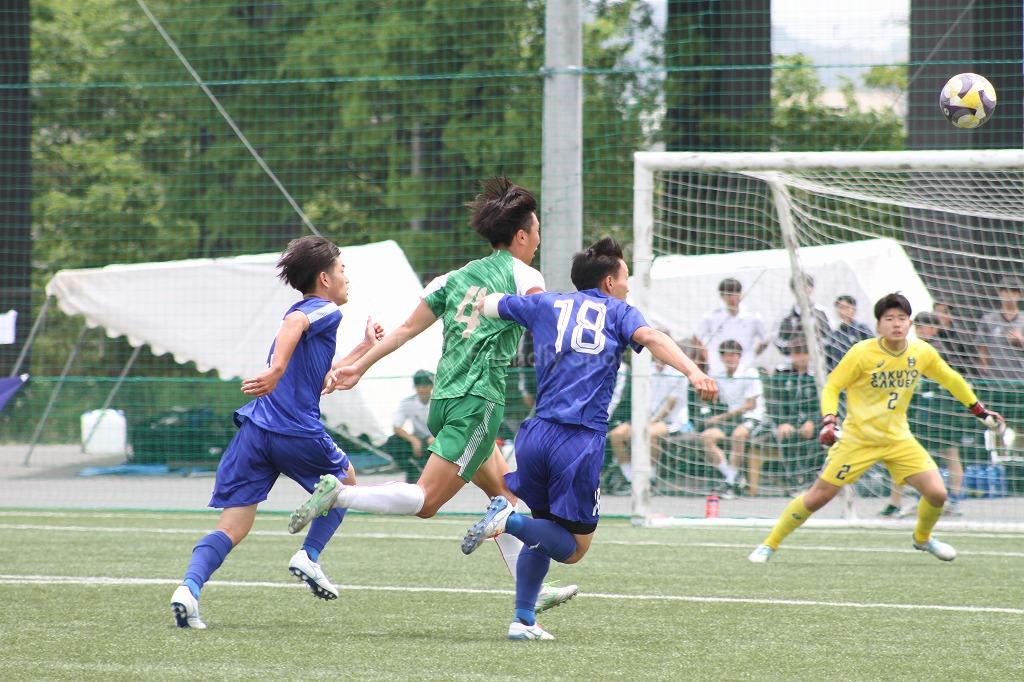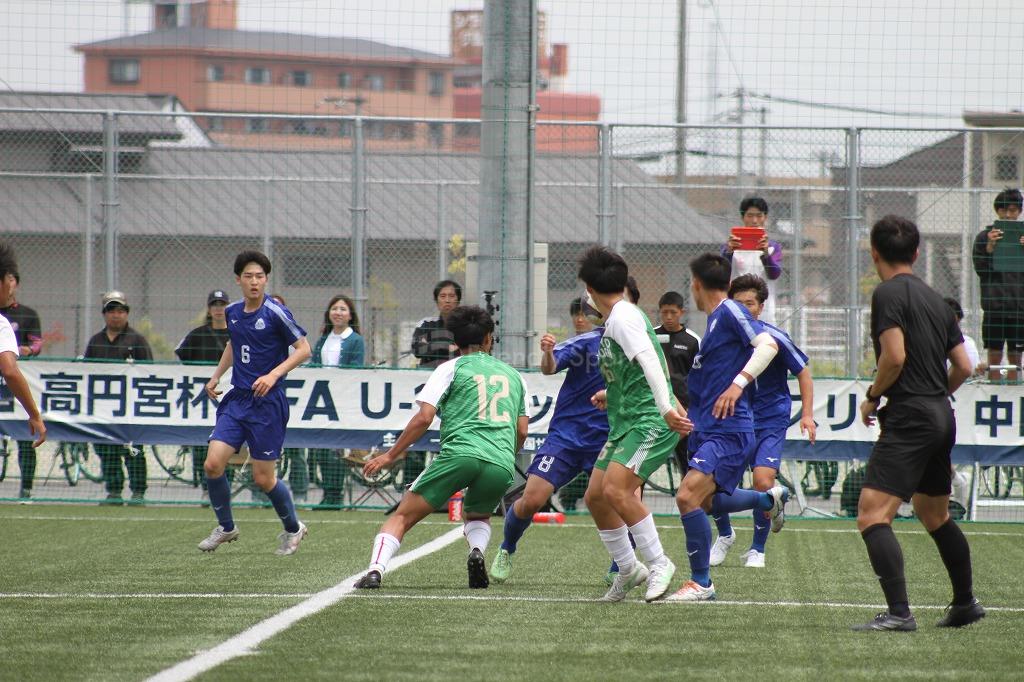 流れはやや作陽気味かと思われたが、玉野光南は一瞬のチャンスをつかむ。右サイド21番の突破からゴール前にクロス。このボールに対し、作陽学園のクリアが中途半端になると6番がシュートを打ちゴールが決まる。