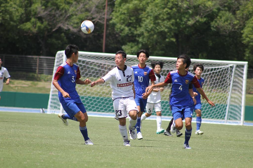 立ち上がりから戸坂は、前線へ早くボールを送り修道ゴール前でボールを繋ぐ。