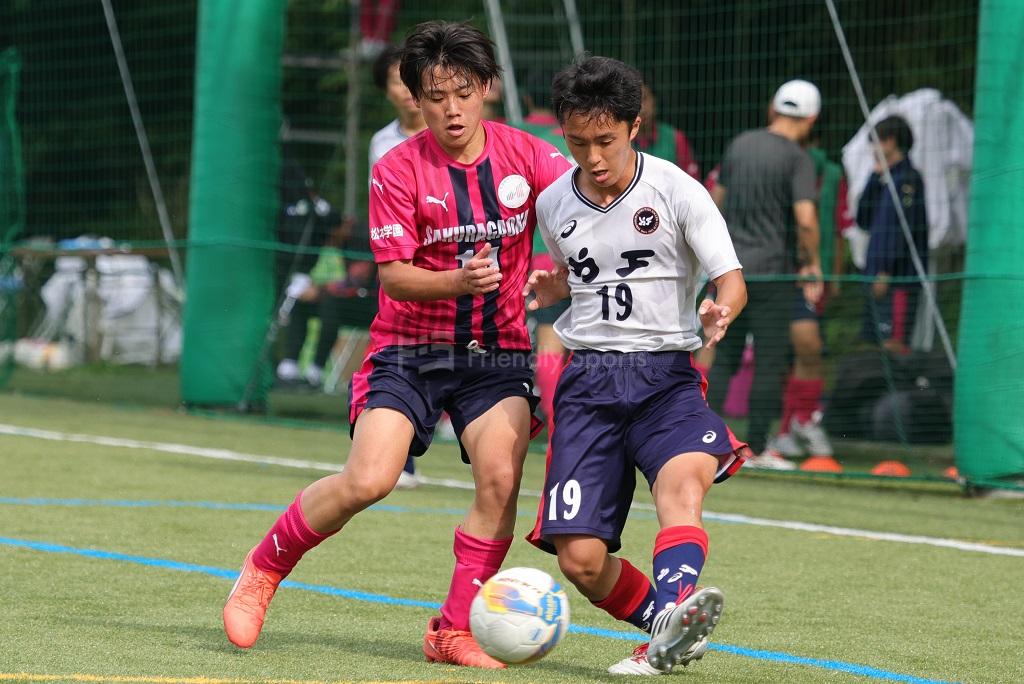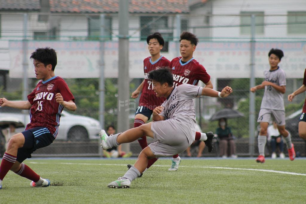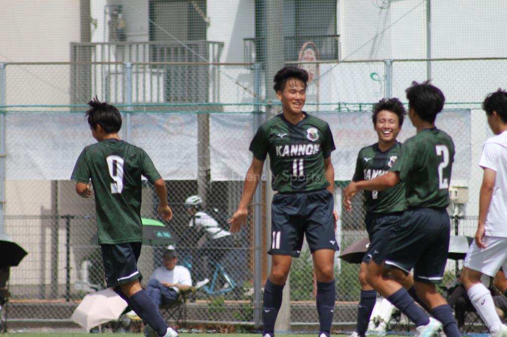 先制したのは広島翔洋。エリア内左でボールを受けた10番、相手からのプレッシャーの中、落ち着いてシュートとし先制点を決める。