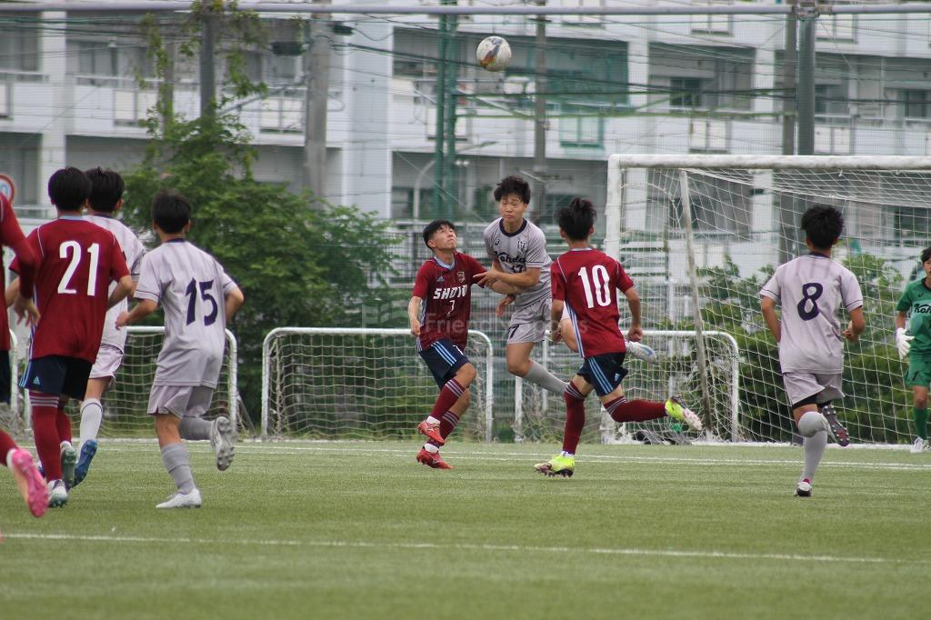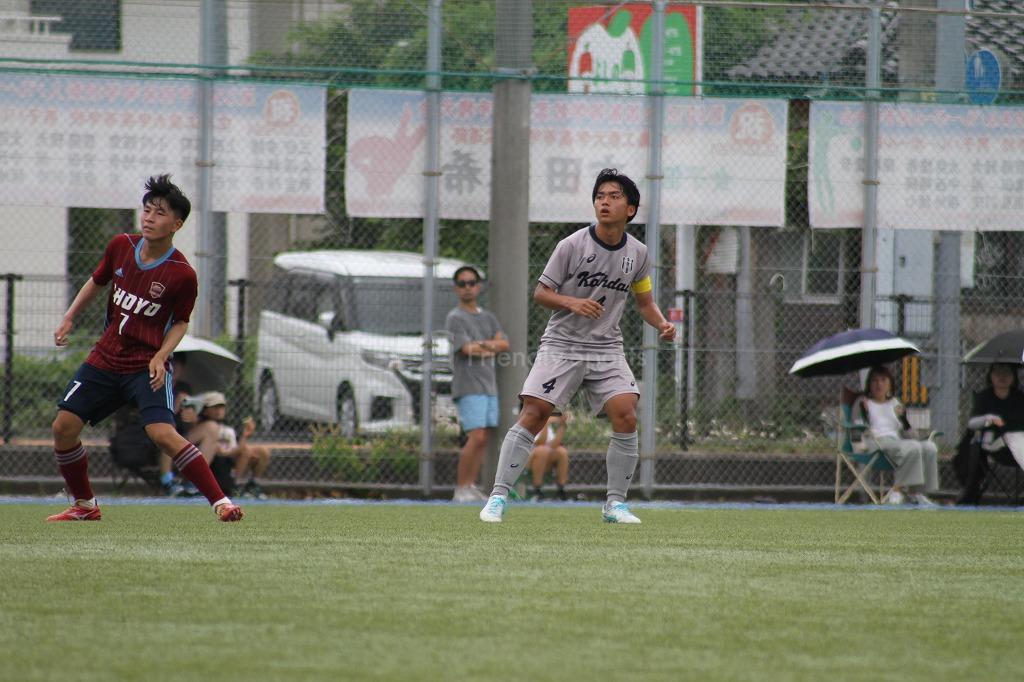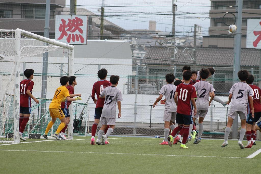 前半の早い時間で先制した広島翔洋は、右サイド28番のクロスに中央で2番が合わせ追加点。