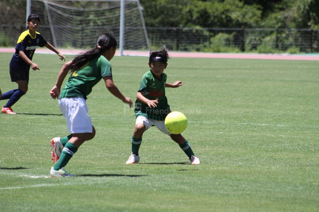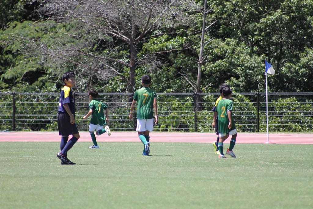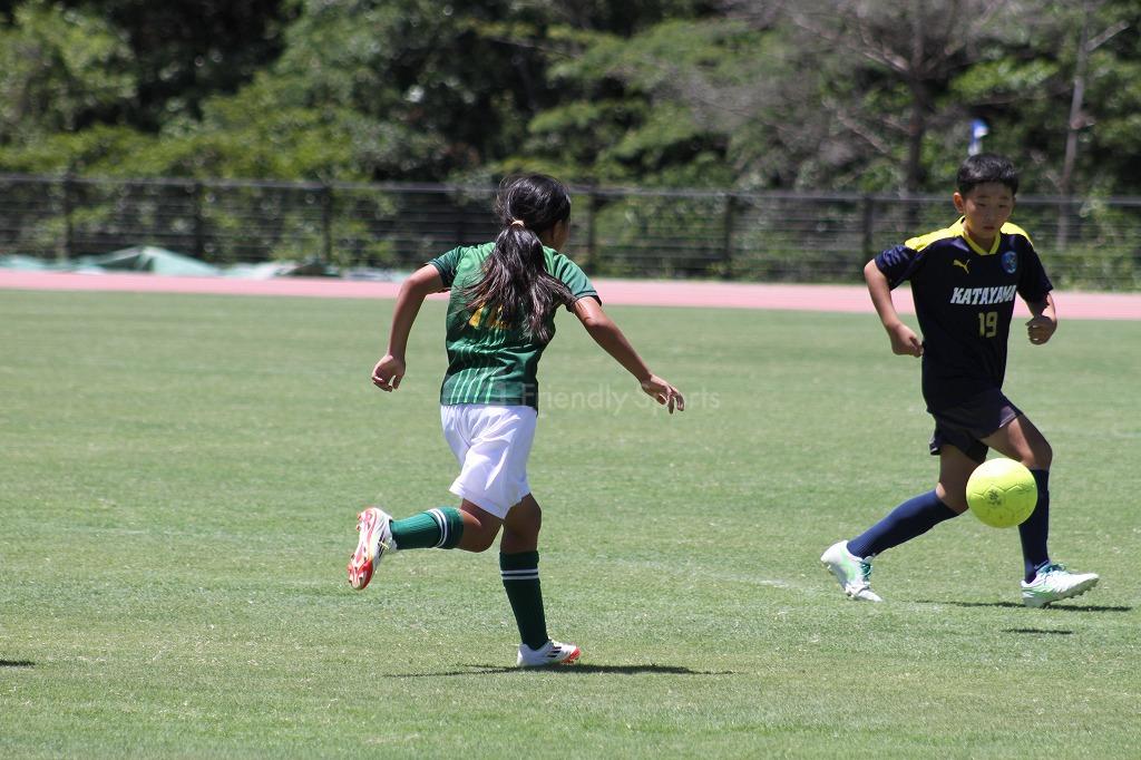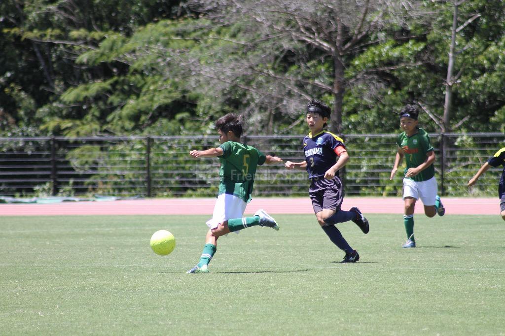 普天間12番、5番、10番はボールを持つと、果敢に攻めの姿勢を見せ、相手陣内へ侵入する。