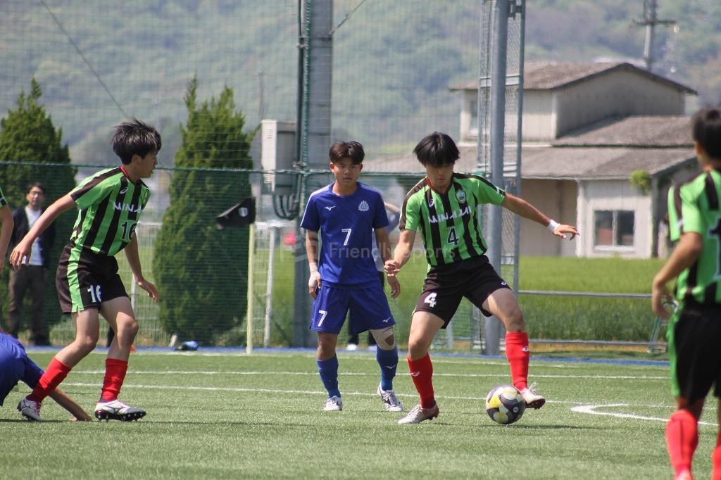 広島皆実は10番、玉野光南は3番が中盤でボールを奪い攻撃の起点となる。