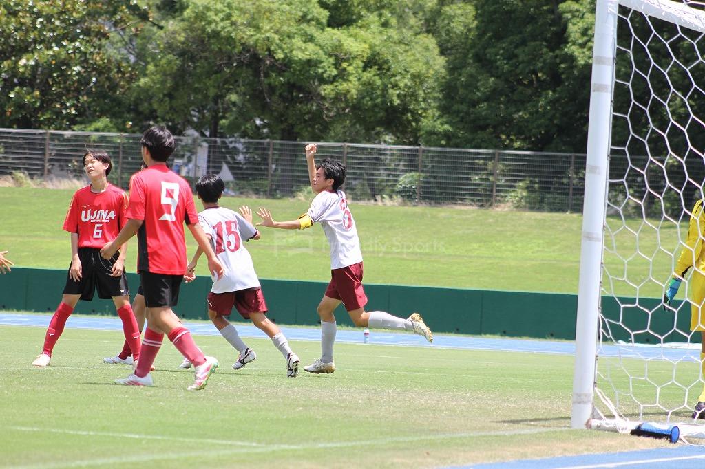 右CKを8番がゴール前にいいボールを上げ、中央の混戦から3番が押し込み早い時間帯で先制点を決める。