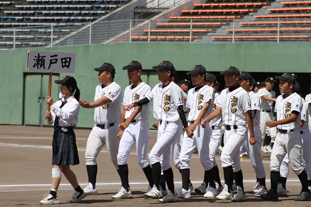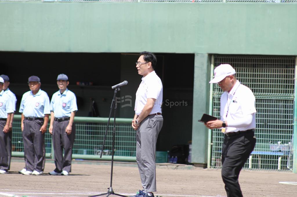 鶴岡一人記念球場に参加する全校が集まり、開会式が行われました。
