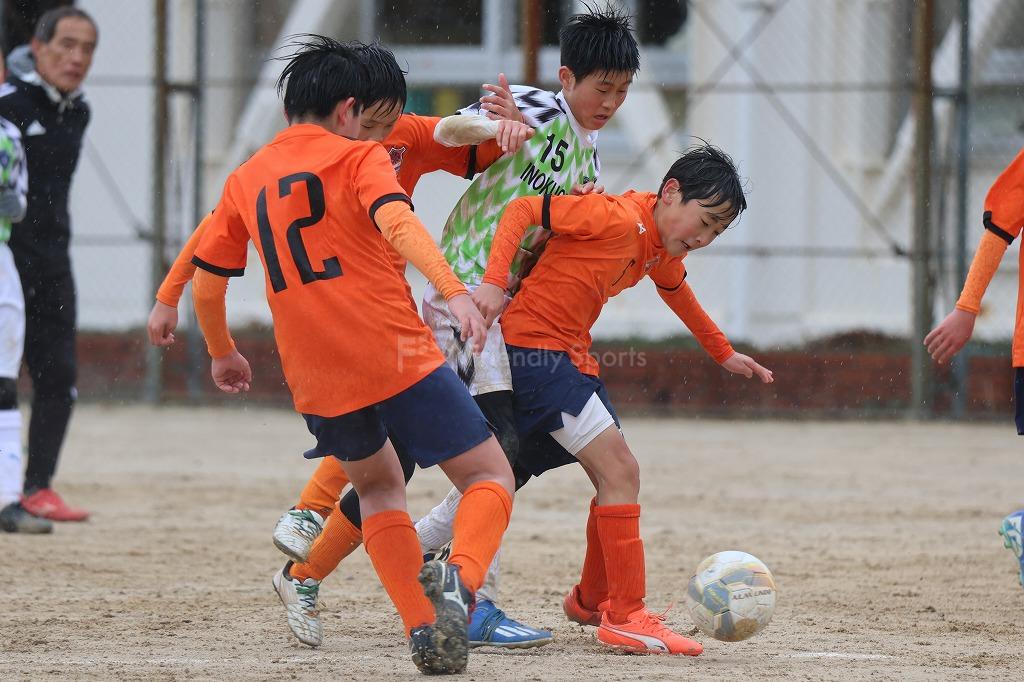 午前は雨、風が強く、選手たちは悪条件の中でもゴールと勝利を目指し懸命なプレーを見せます。