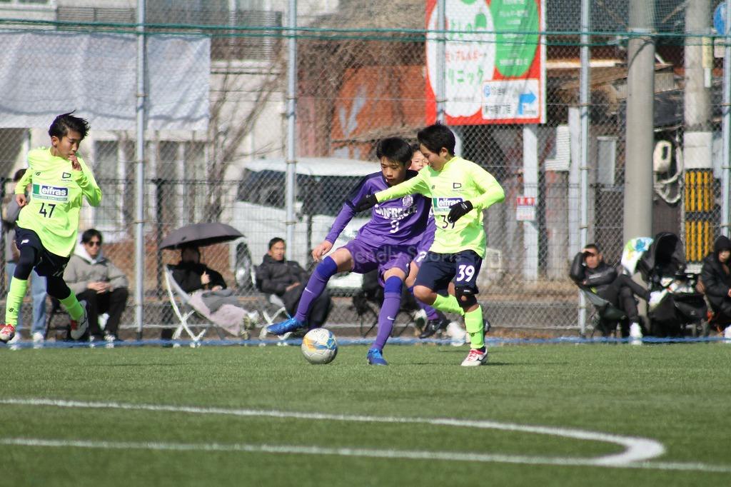 試合開始からサンフレ広工大がボールを触る時間が多く、相手ゴールに迫る。