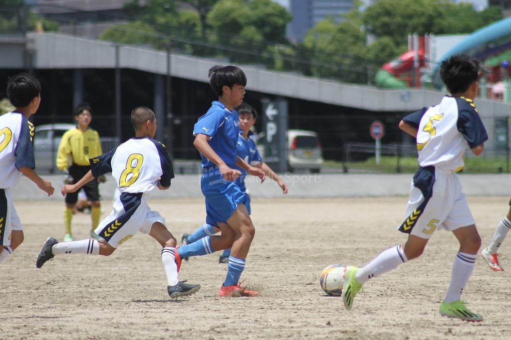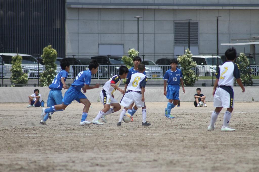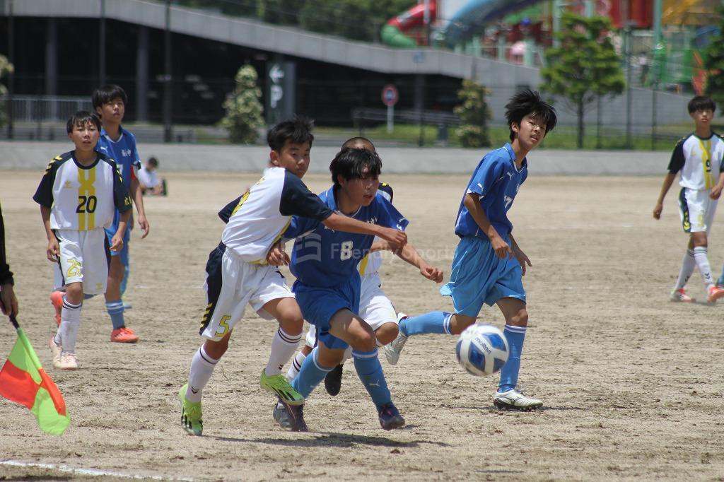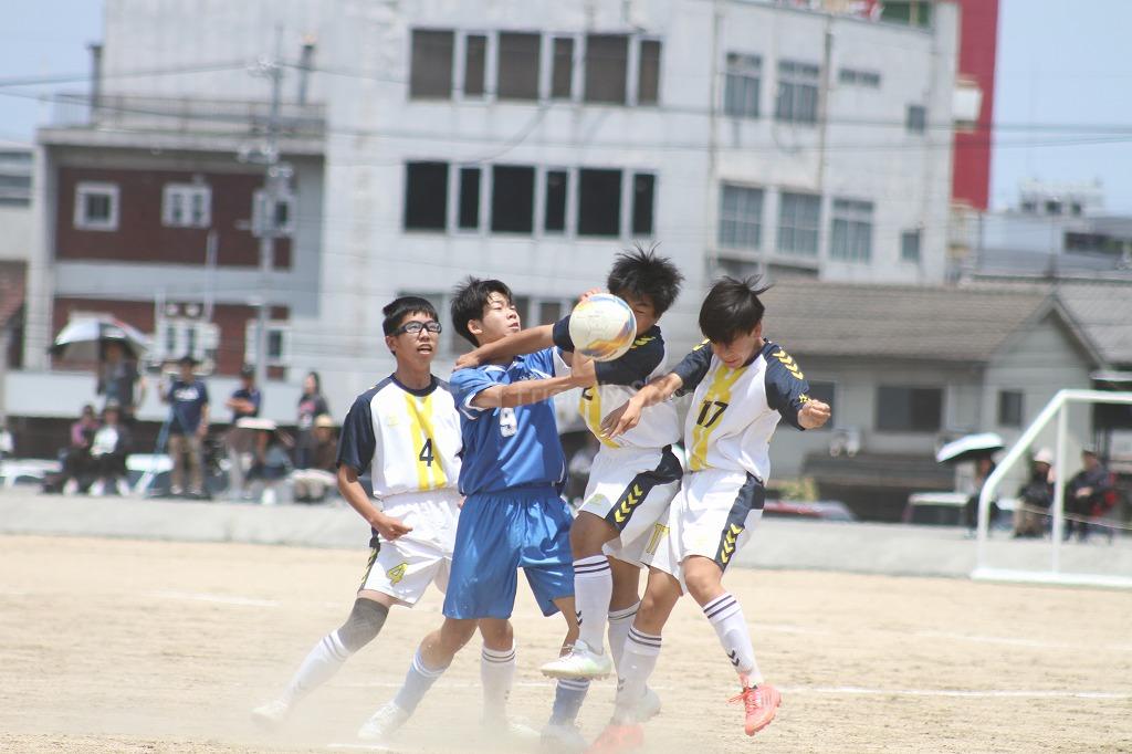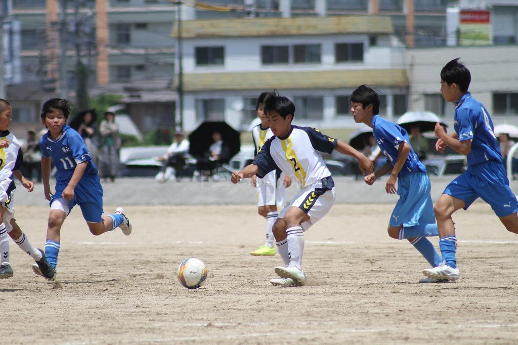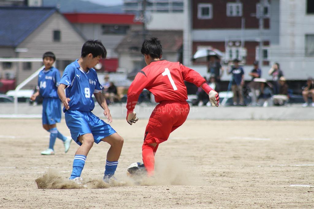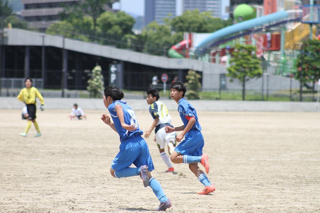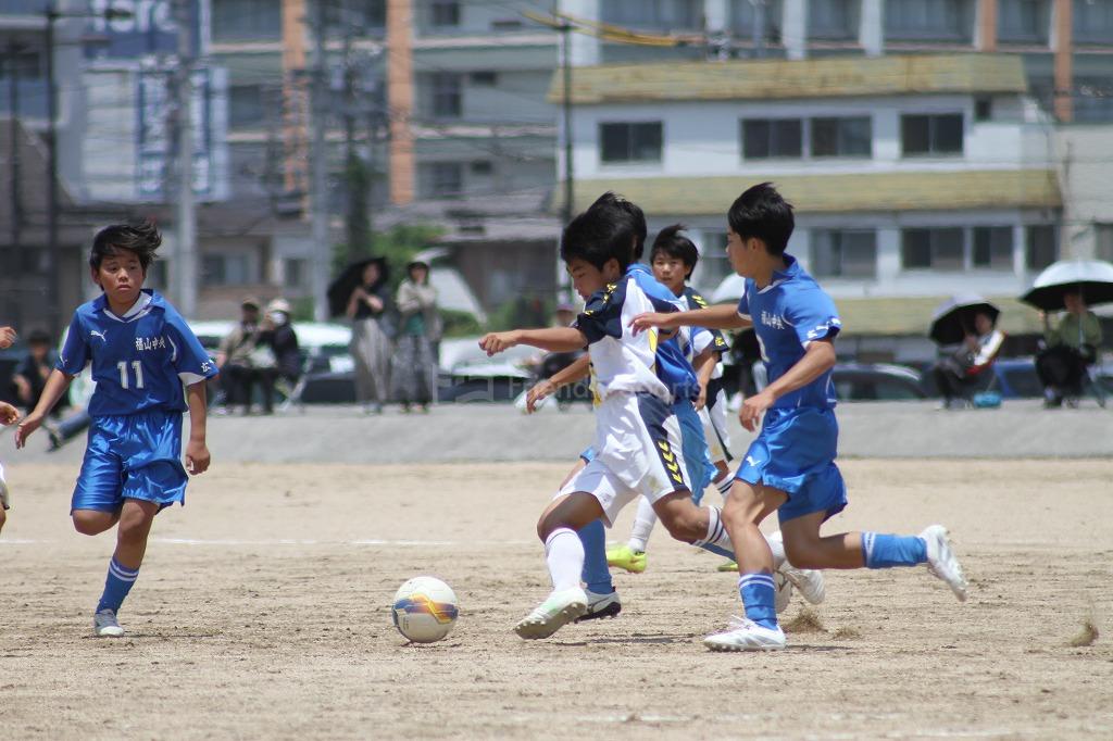 互いにゴールを目指す中、駅家南11番の絶好のチャンスがあるが、中央の守備陣が防ぐ。