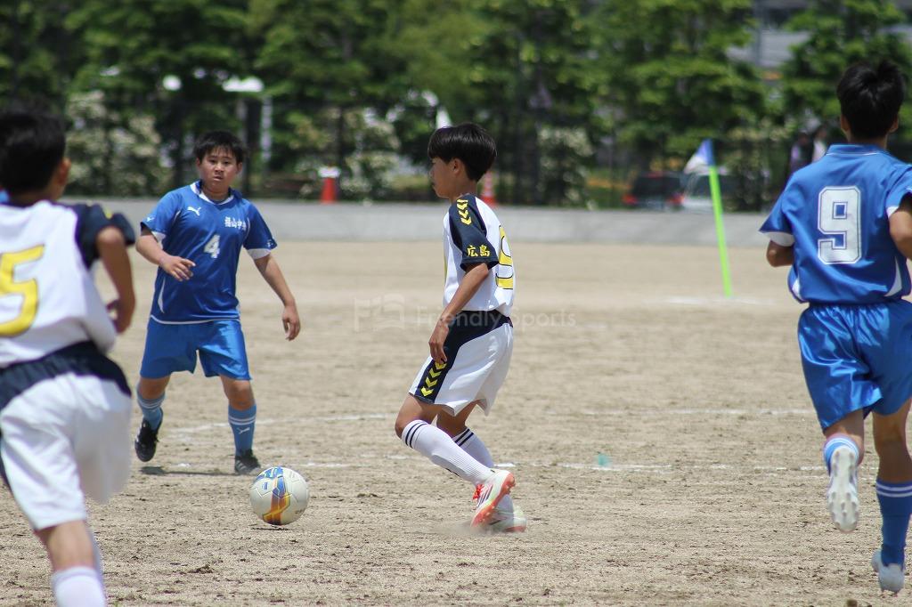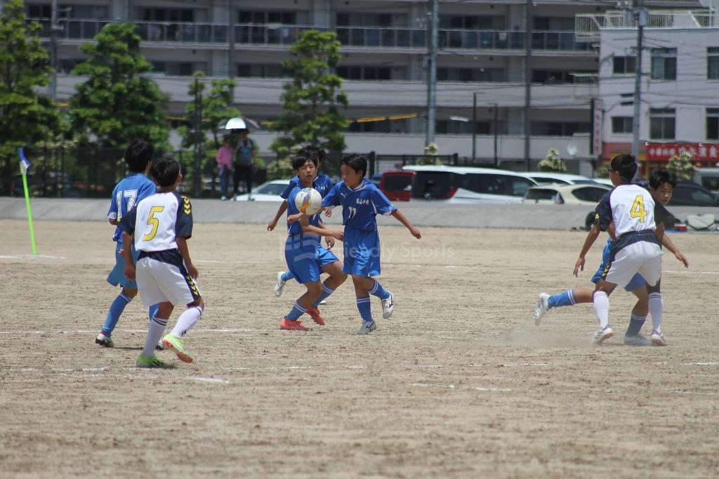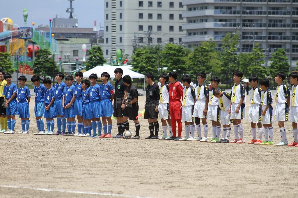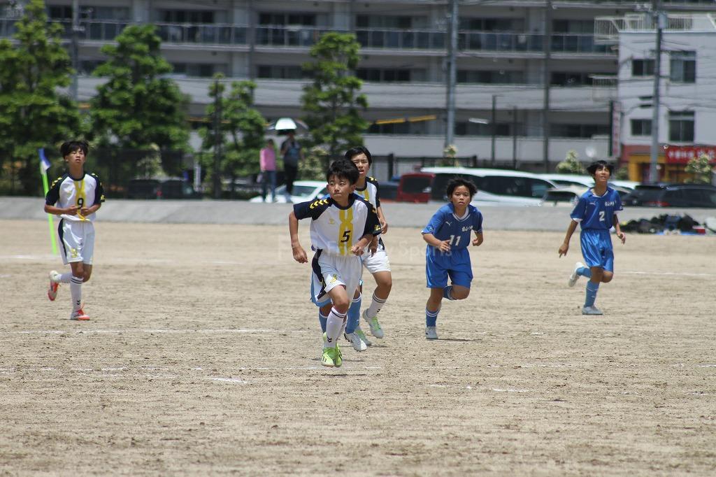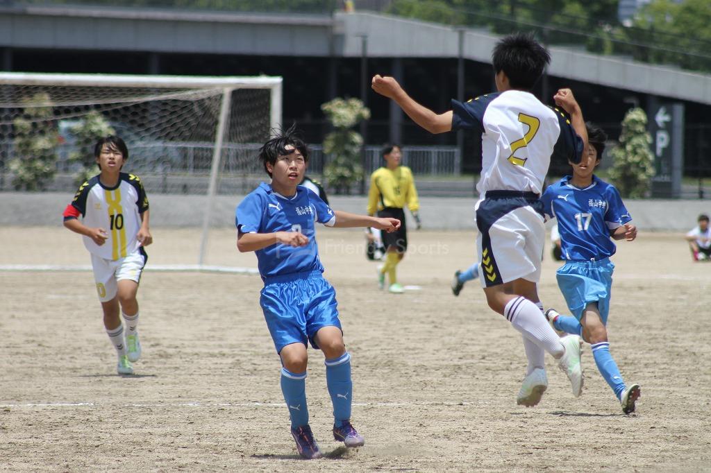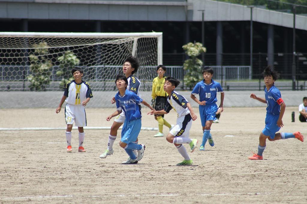 互いにゴールを目指す中、駅家南11番の絶好のチャンスがあるが、中央の守備陣が防ぐ。
