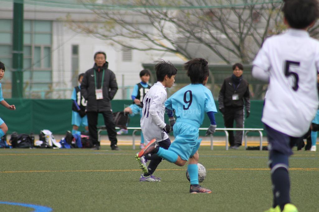 五日市南12番はボールを持つと、果敢にドリブルで仕掛ける。