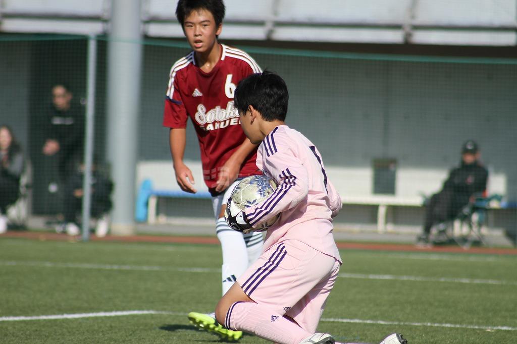 諦めない崇徳は、14番がハーフライン付近で受け、相手ゴールに迫るが修道は最後までゴールを与えない。