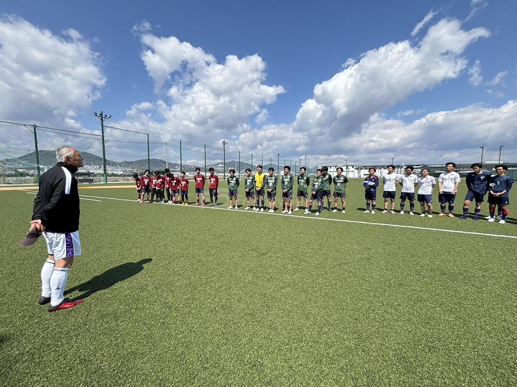 大会運営を広島県シニアオーバー70の選手たちが駆けつけてくれ、「70歳になってもサッカーはできる。みなさんがこの年になって日本一をとってください。」と熱いエールもありました。(昨年、広島県代表がオーバー70の全国大会で優勝しました)