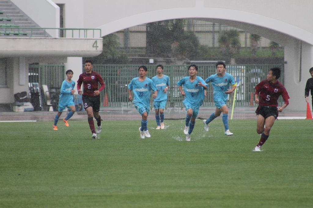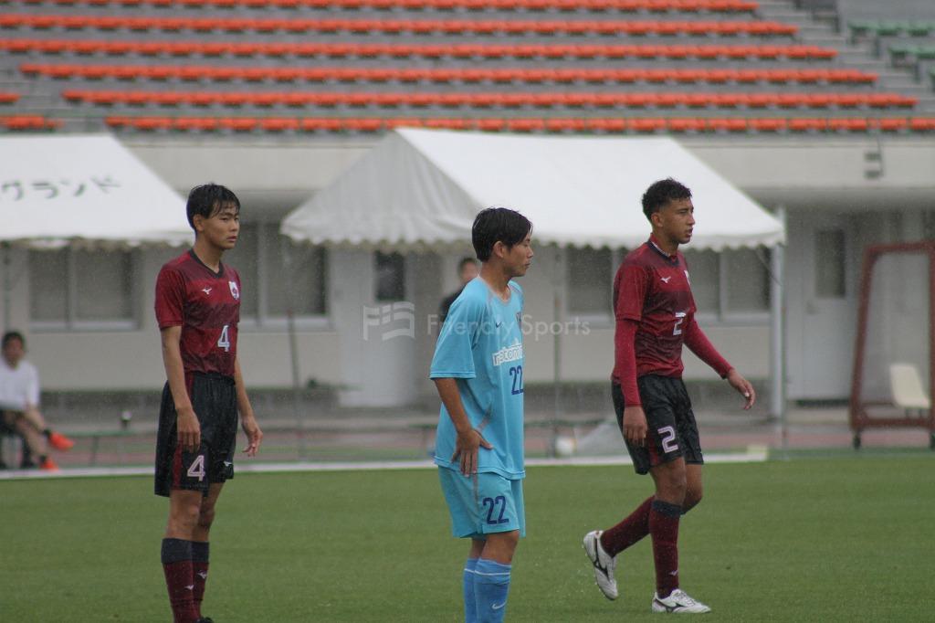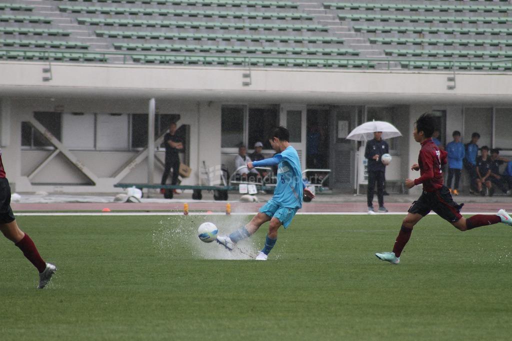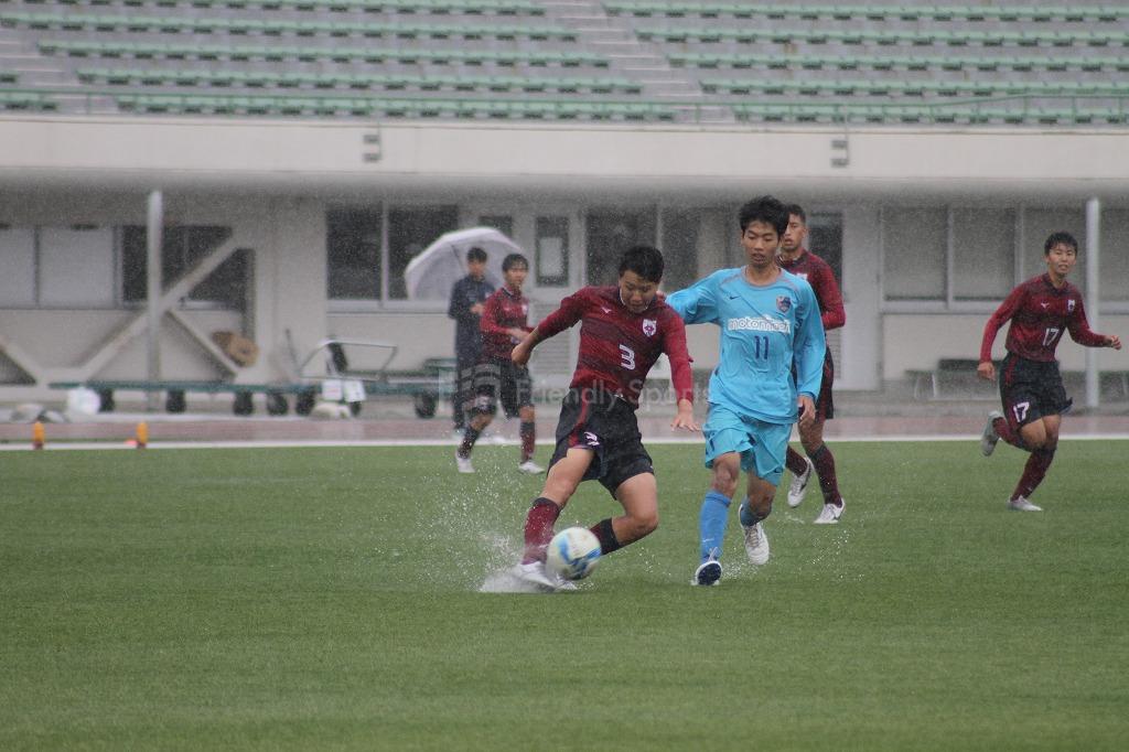 サイドにいいボールが展開されるも、清水ヶ丘DF3番が集中した対応で相手に決定機を与えない。