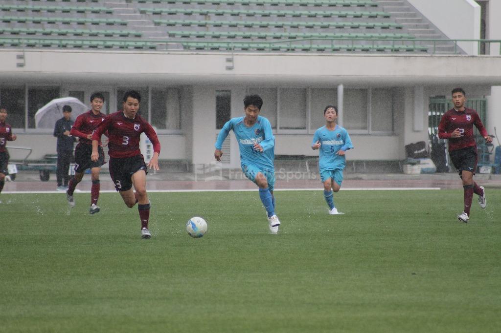 リードされる展開の基町は、5番がボールを持ち前線にパスを送る。