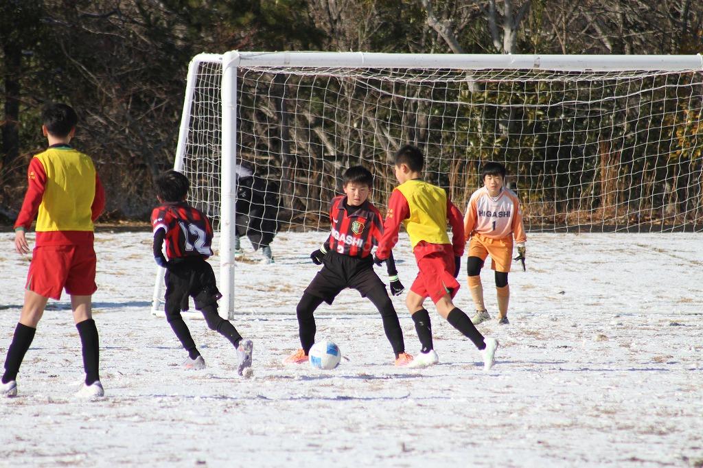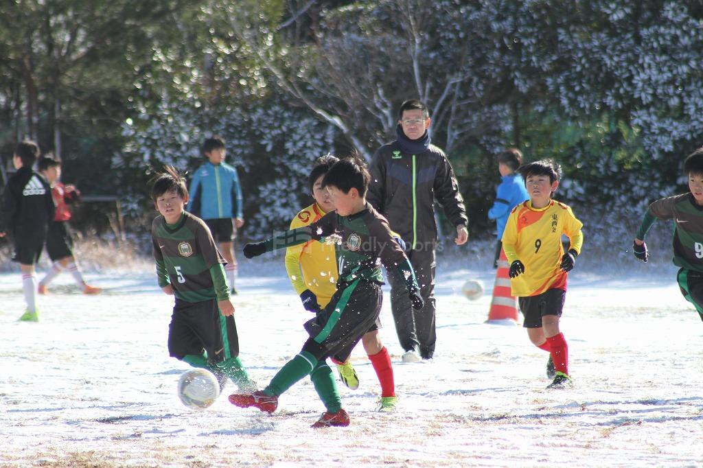前日からの雪で少年ピッチ4コート全面雪化粧の中での試合となりました。