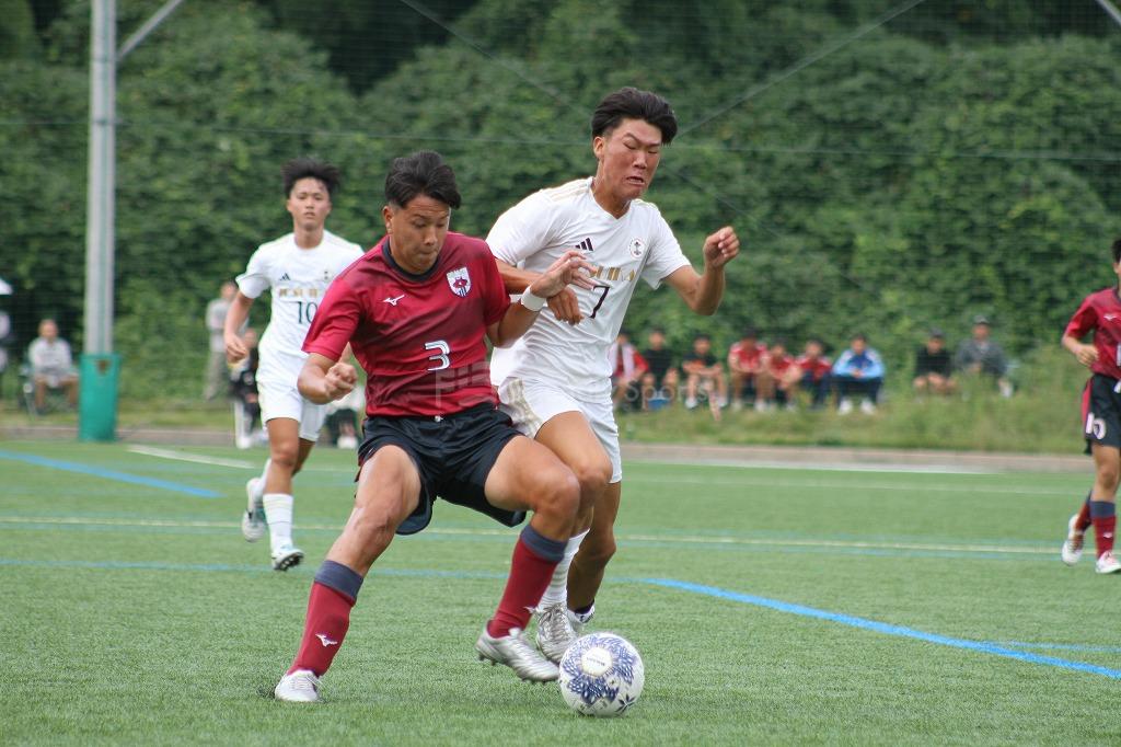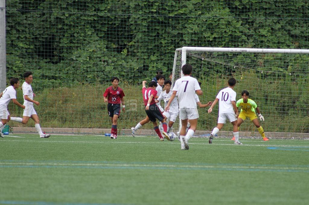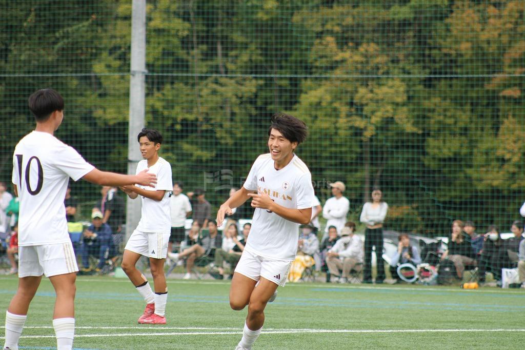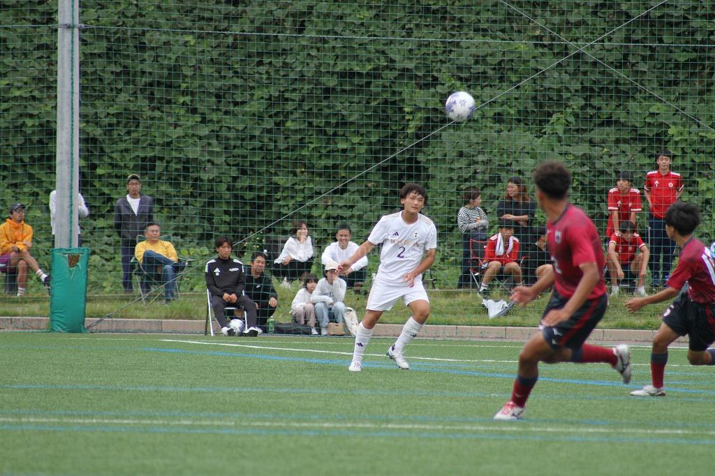 20分、ハーフライン付近のFKからゴール前に浮きパス。これを10番が受け、混戦からのこぼれ球をつめ1点を返す。