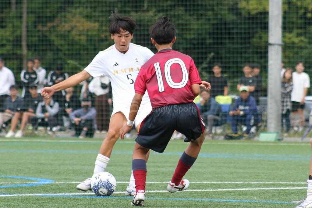 4分、右サイドからクロスを上げるとゴール前のこぼれたまに8番、さらに10分、同じような形から5番が頭で合わせ序盤で2点を決めた如水館。