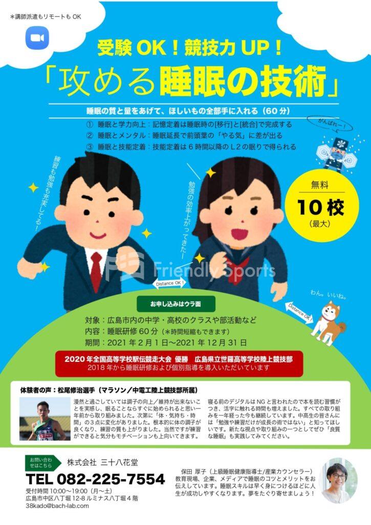 ・内容:広島市内の学校や部活動チームなどに訪問し睡眠研修を行います