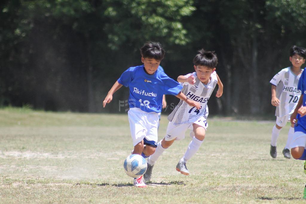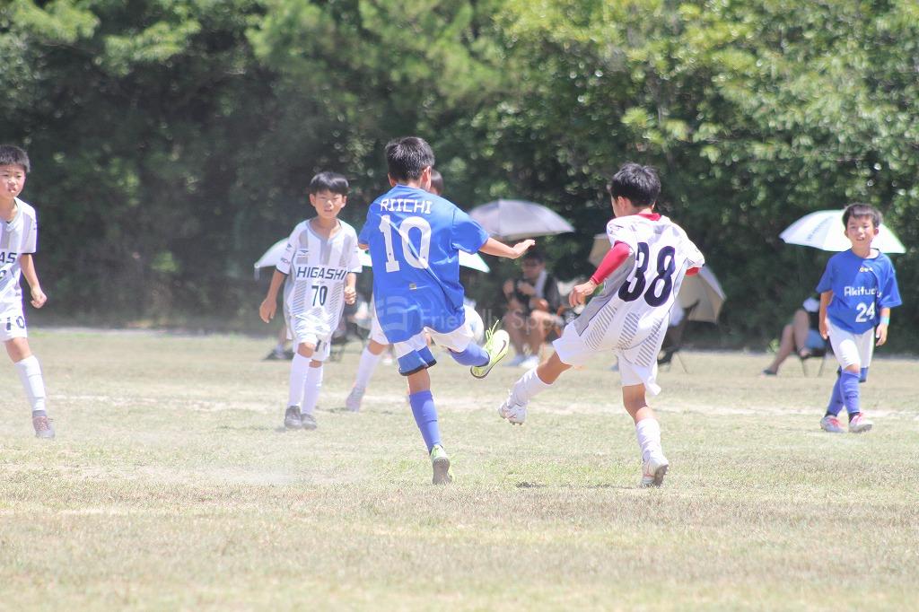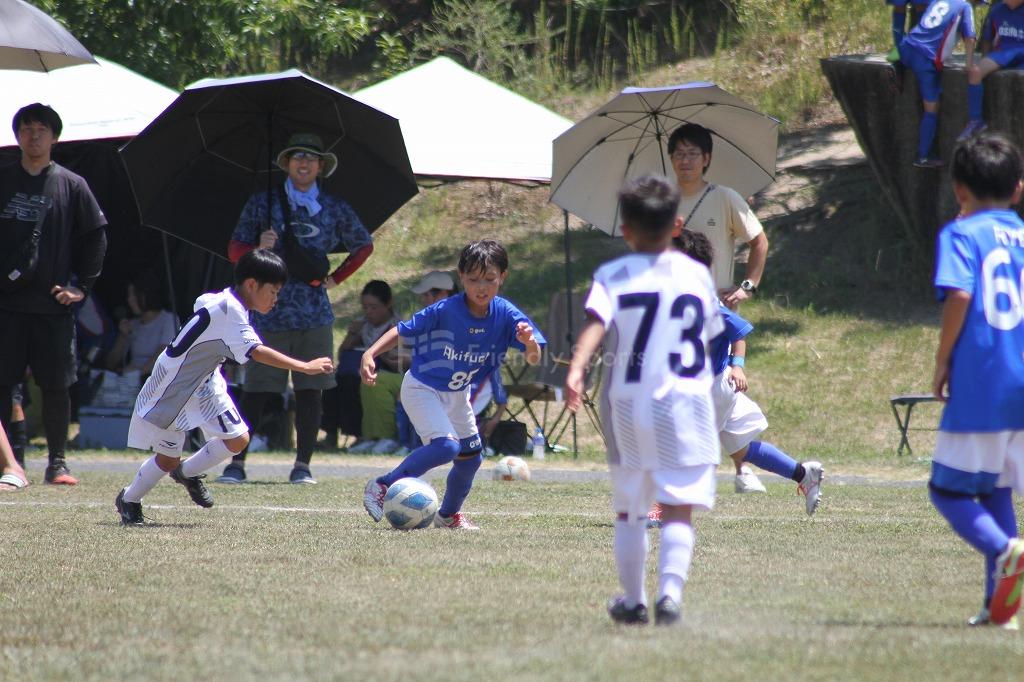 安芸府中10番がボールを持つと、ドリブル、パスでチャンスを演出する。