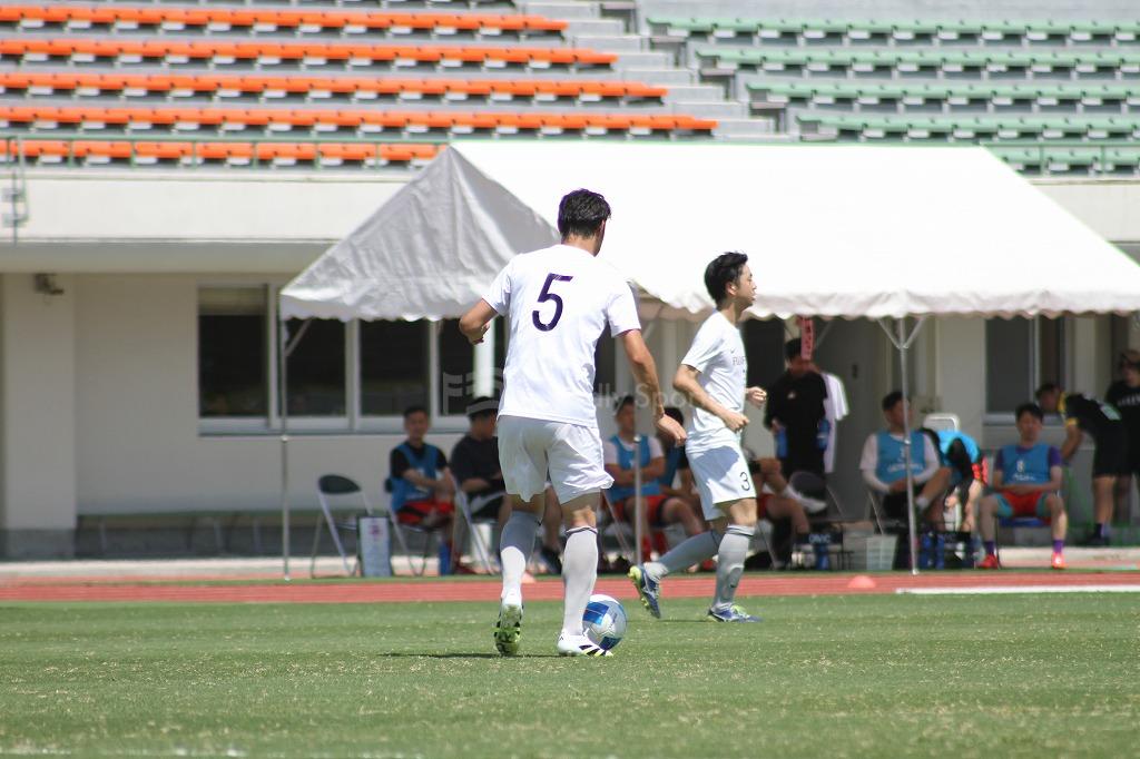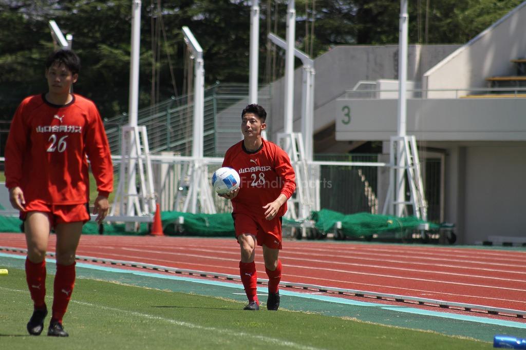 先制したのは山口合同ガスサッカー部(以下、山口)で、相手陣内で相手チームがパスミスをすると、これを前線の選手が奪いゴールに流し込み先制する。