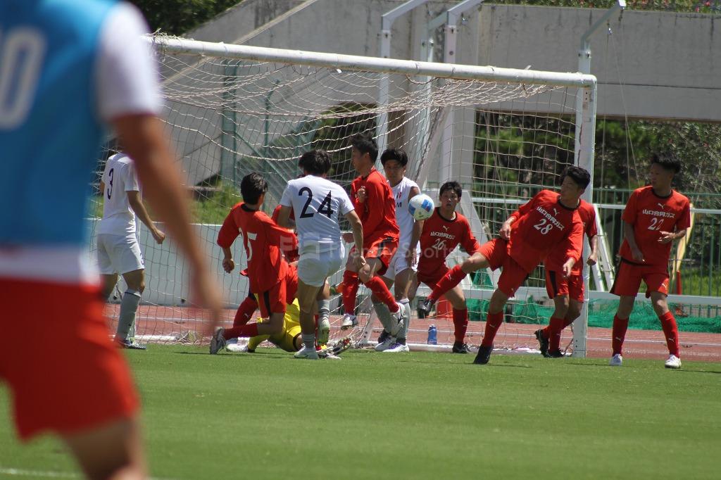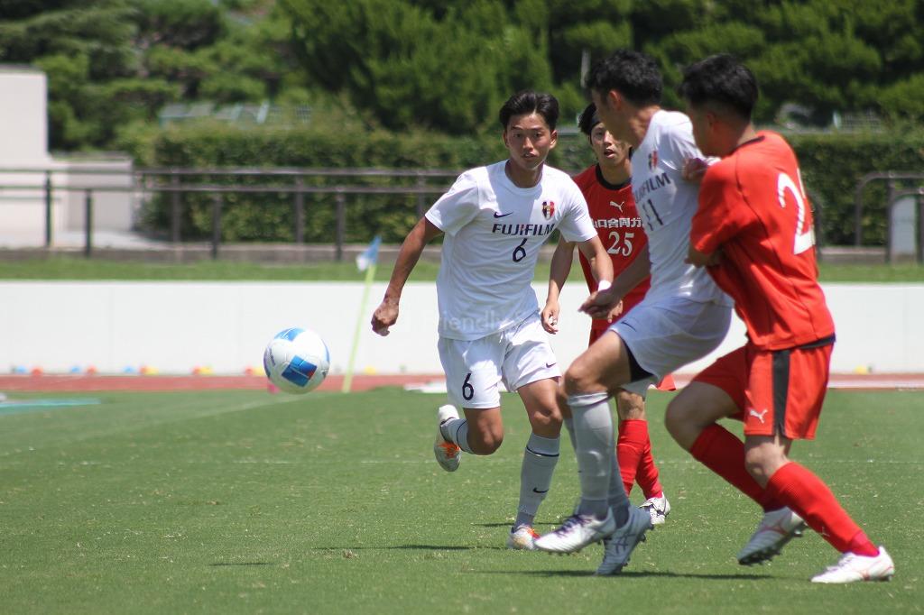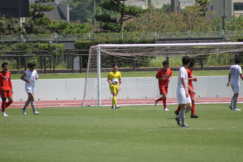 先制したのは山口合同ガスサッカー部(以下、山口)で、相手陣内で相手チームがパスミスをすると、これを前線の選手が奪いゴールに流し込み先制する。