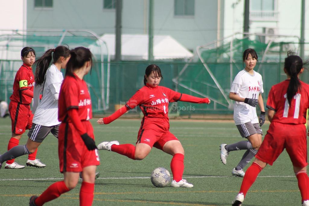 山陽が前半から果敢に攻める。前線の11番がボールを持つと、キレのあるドリブルで得点の起点となる。
