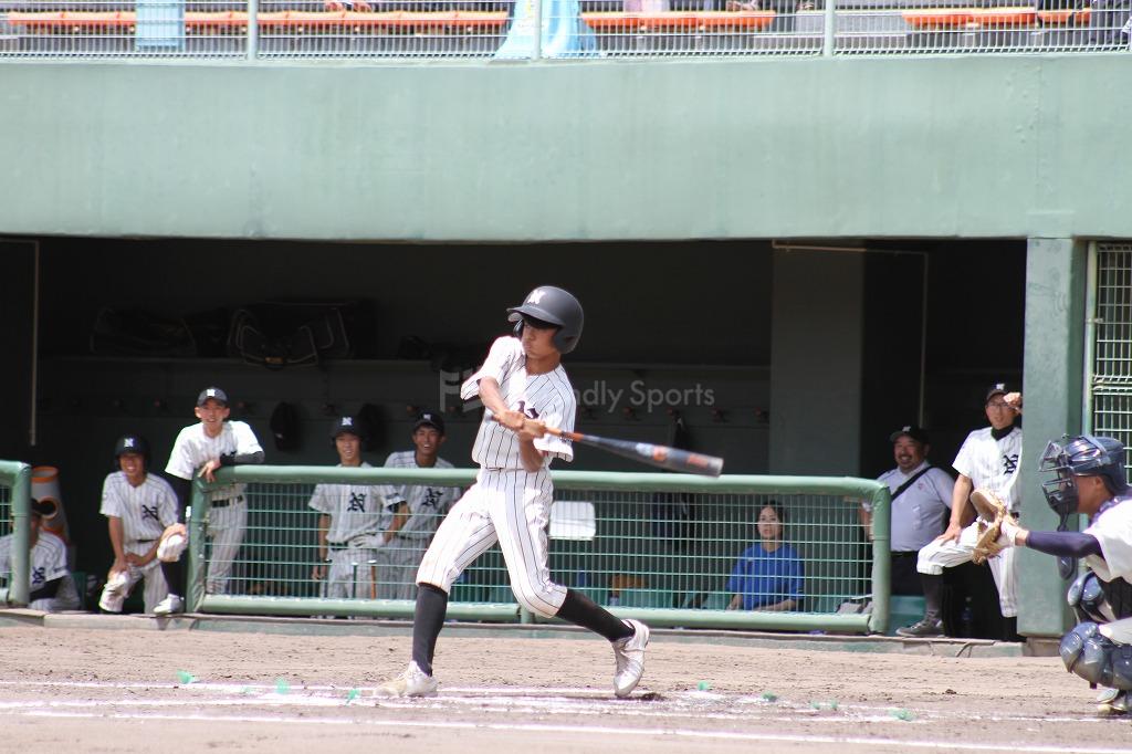 反撃に出る新庄は3回裏、7番のレフト前ヒット。バンドでランナーを進め、1番のレフト前タイムリーで1点を返す。