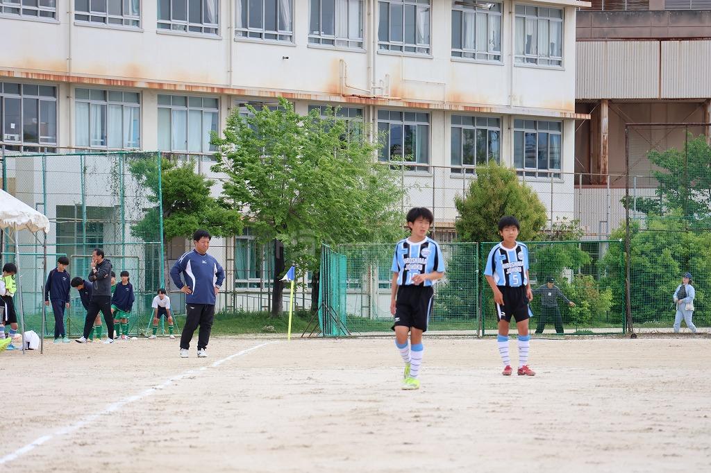 右サイド19番が果敢にドリブル突破しチャンスメイク。中央から上がった浮き球パスに17番が受け、ゴール前にクロスを送ると、8番が右足で決める。先制点から追加点と得点を重ねる城北。