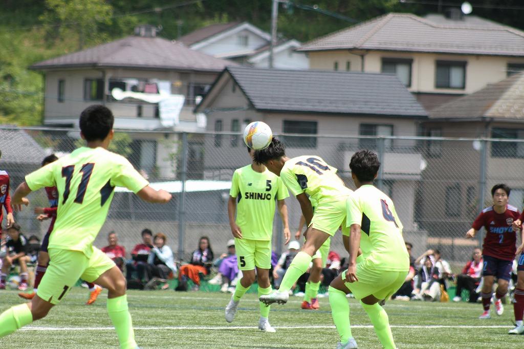 新庄は前半から躍動する10番から蹴って気を演出。サイドからのクロスに5番が合わせるが翔洋GKのファインセーブに阻まれる。