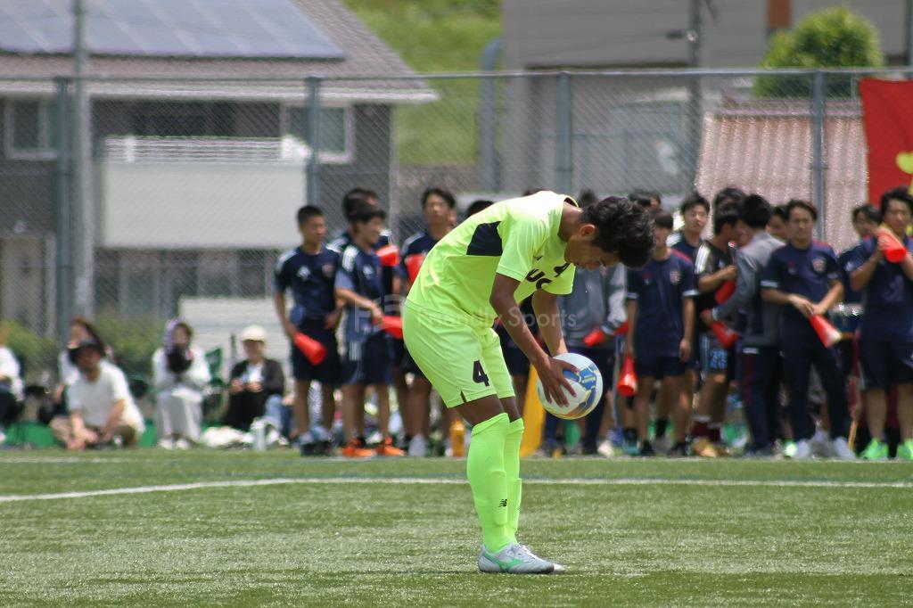 相手エリア近くからのロングスローをゴール前へ。味方選手の折り返しに混戦の中から気持ちで押し込んだ翔洋が待望の先制ゴールを奪う。