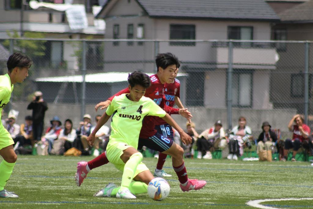 勢いに乗る翔洋はエリア左付近で7番が裏へ抜け出すと、うまいコントロールシュートで追加点。