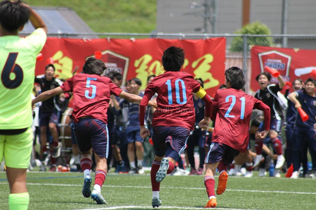 相手エリア近くからのロングスローをゴール前へ。味方選手の折り返しに混戦の中から気持ちで押し込んだ翔洋が待望の先制ゴールを奪う。