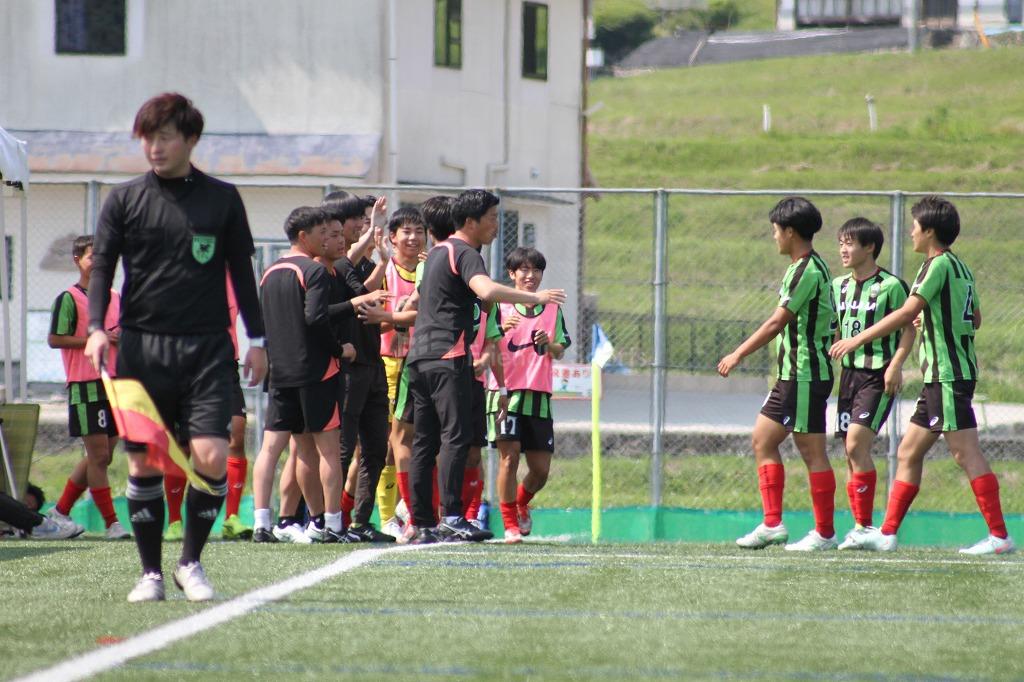 同点に追いつかれた広島皆実だったが、16番がエリア外からミドルシュートを決め再びリードする。