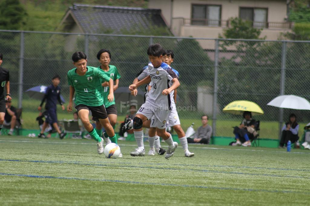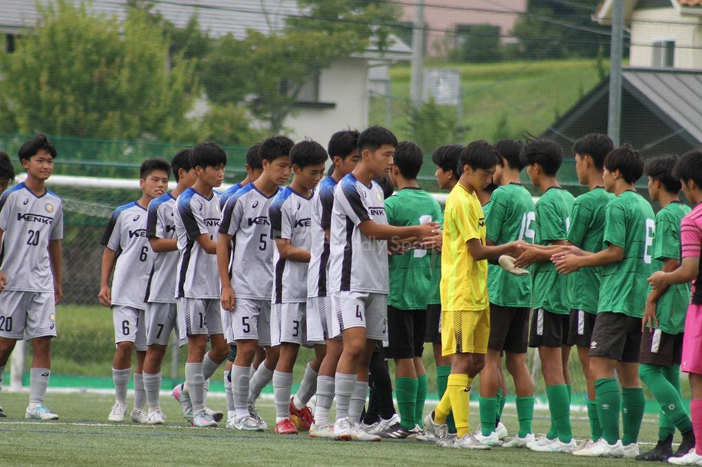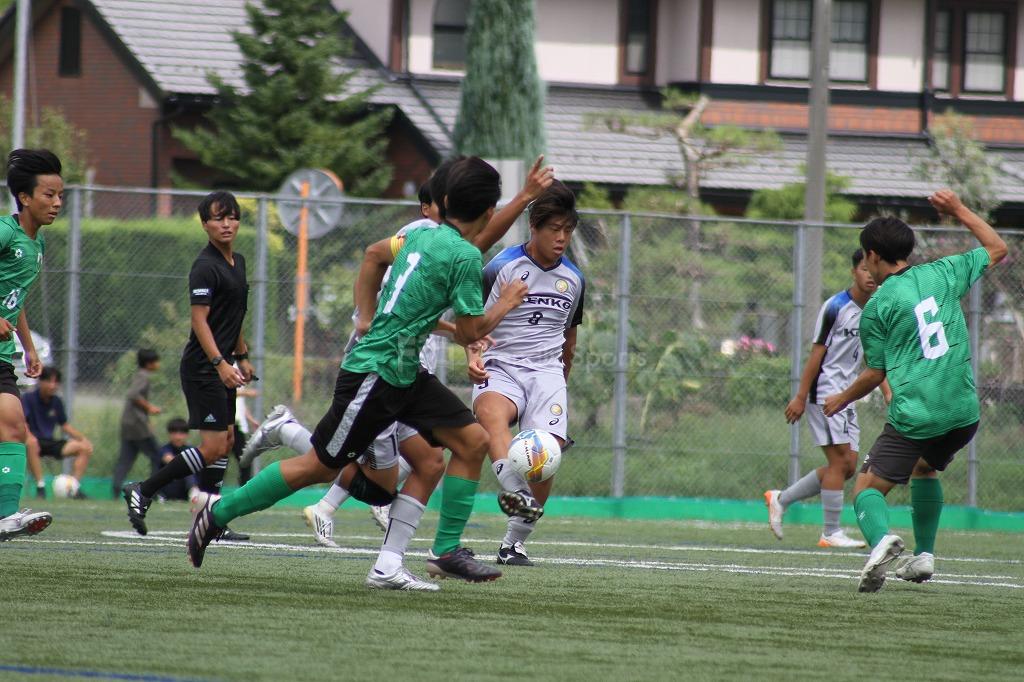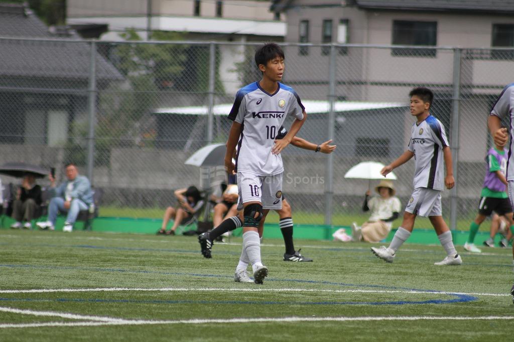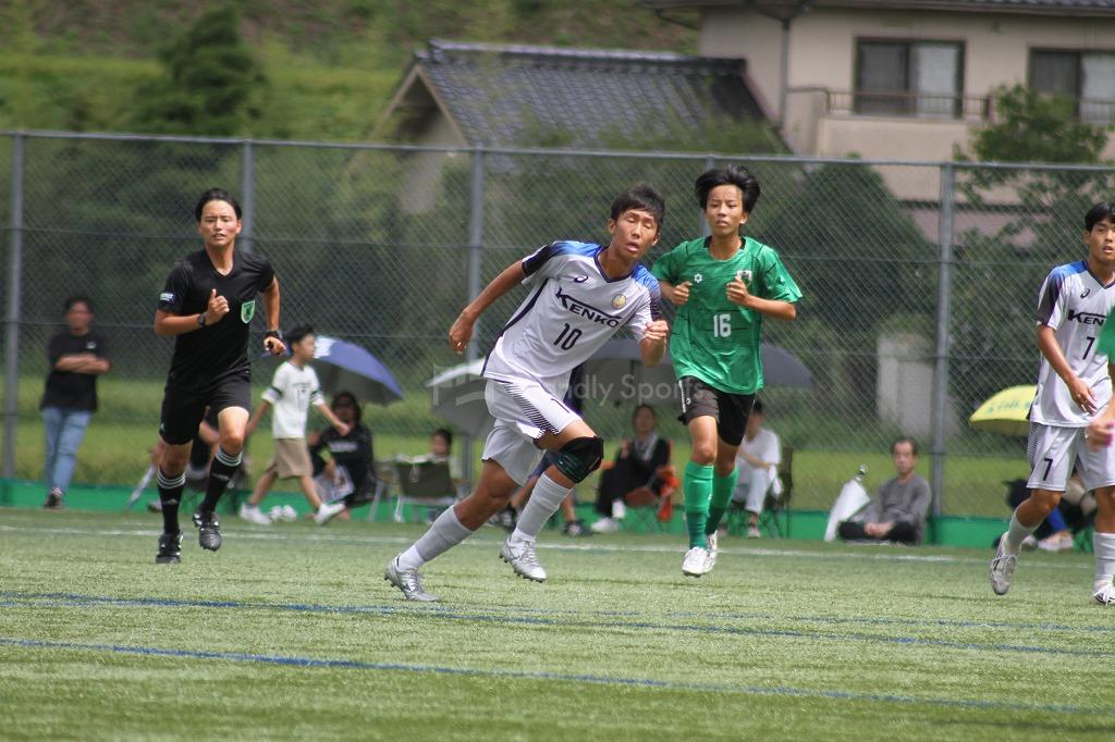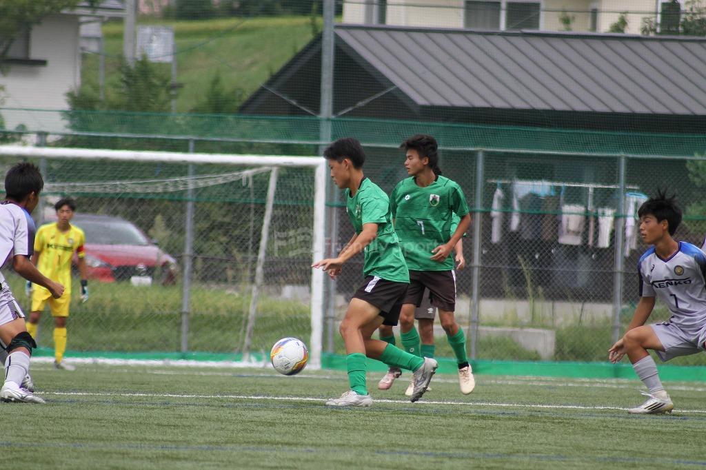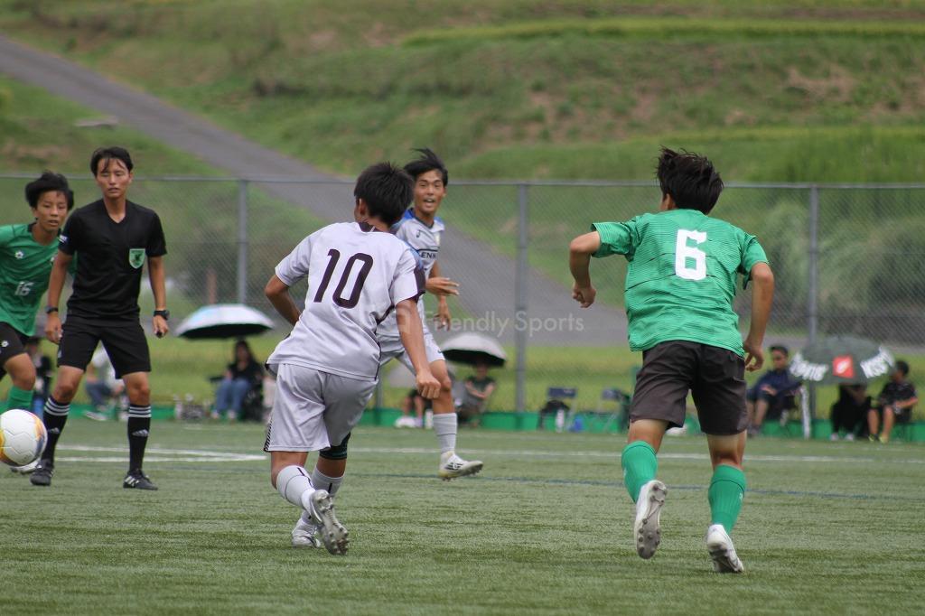 先制は県工が決める。右サイドからのスローインに、ゴール前の混戦から10番が右足で決め先制する。