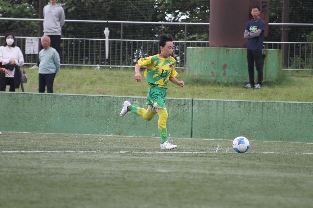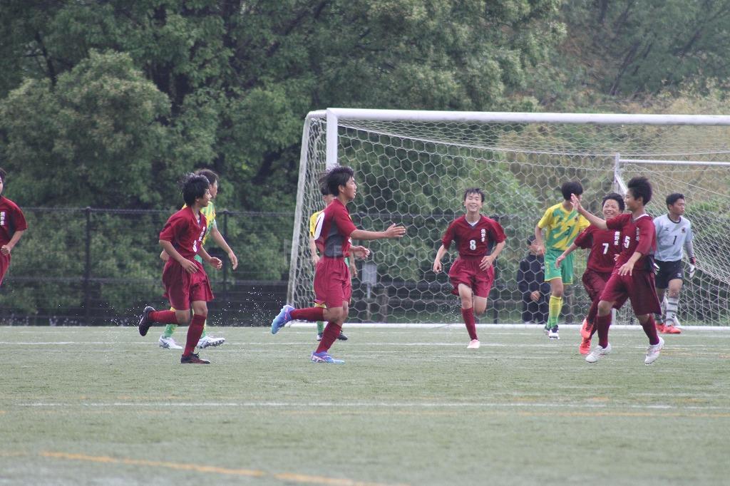 追いかける緑ヶ丘は、右CKから低い鋭いボールをゴール前にあげると、混戦から選手に当たったボールは滑りながらゴールに吸い込まれ同点にする。