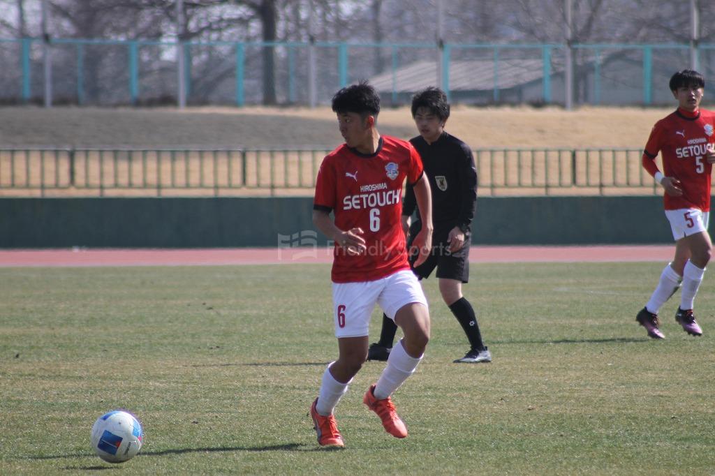 前半、瀬戸内は沼田の自陣からつなぐサッカーに対し、プレッシャーをかけミスを誘う。
