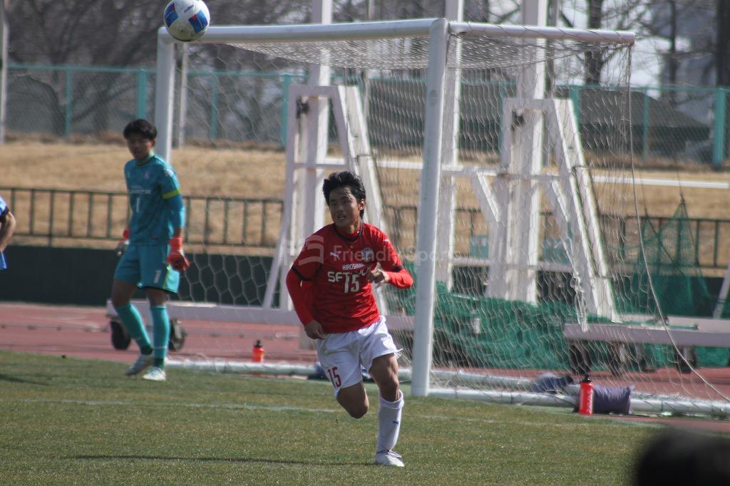 0-0のまま前半が終了かと思われたが、沼田はカウンターから左サイド13番にパスが通る。13番はエリア外から中央へカットインし右足を振りぬき先制ゴールを叩き込む。