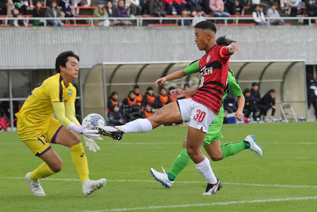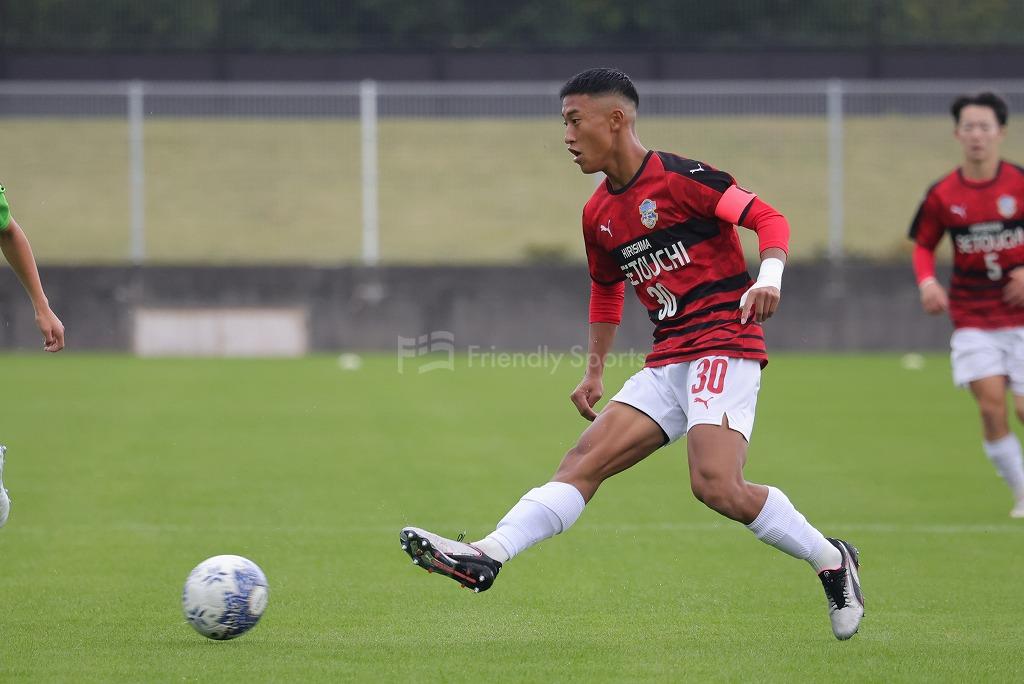 瀬戸内、左サイド30番はサイドをスプリントし裏へ抜け出すいい動き。CKを獲得。