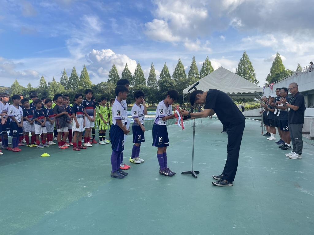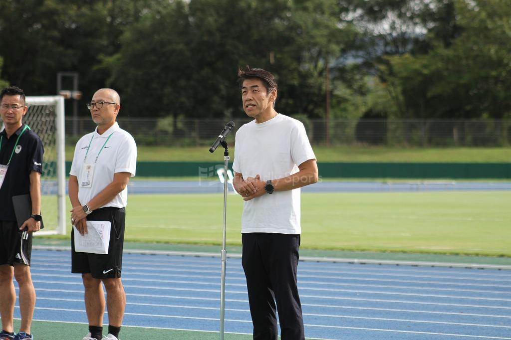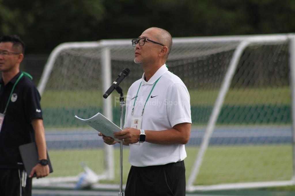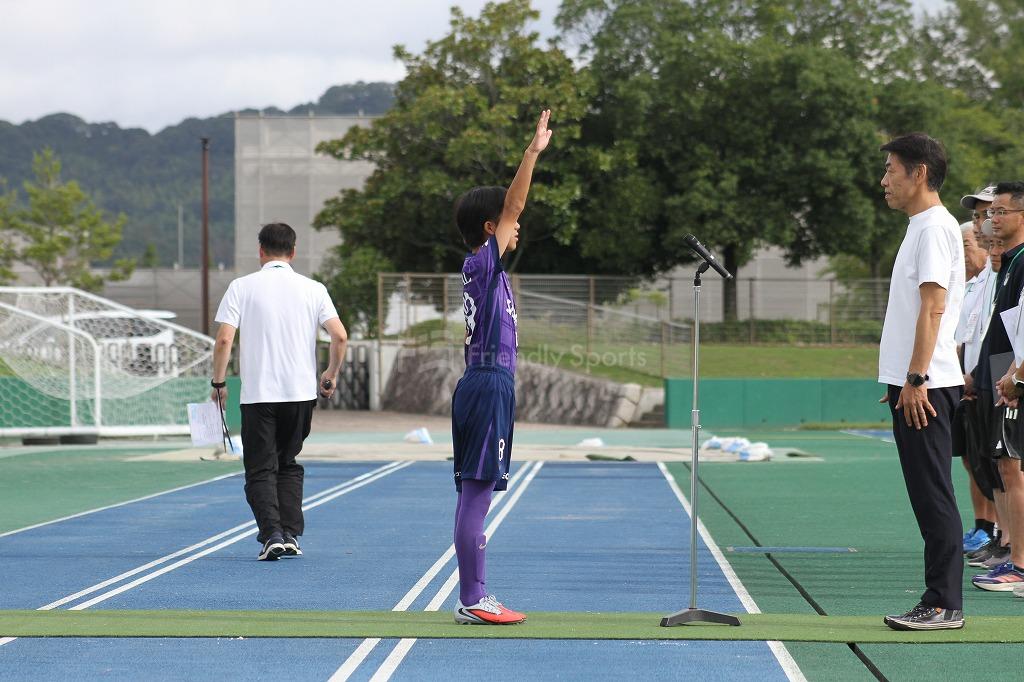 東広島運動公園会場では開会式が行われ、本大会の後援 株式会社マエダハウジング 社長 前田 政登己氏が祝辞を述べられ、その後は選手代表としてサンフレジュニアの選手から力強い宣誓がありました。
