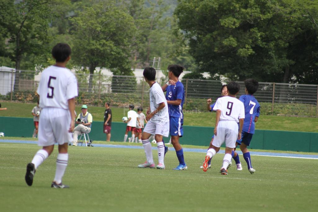 如水館は後ろからしっかりとつなぐスタイル。対する済美は縦への意識が高く早めの攻撃をしかける。