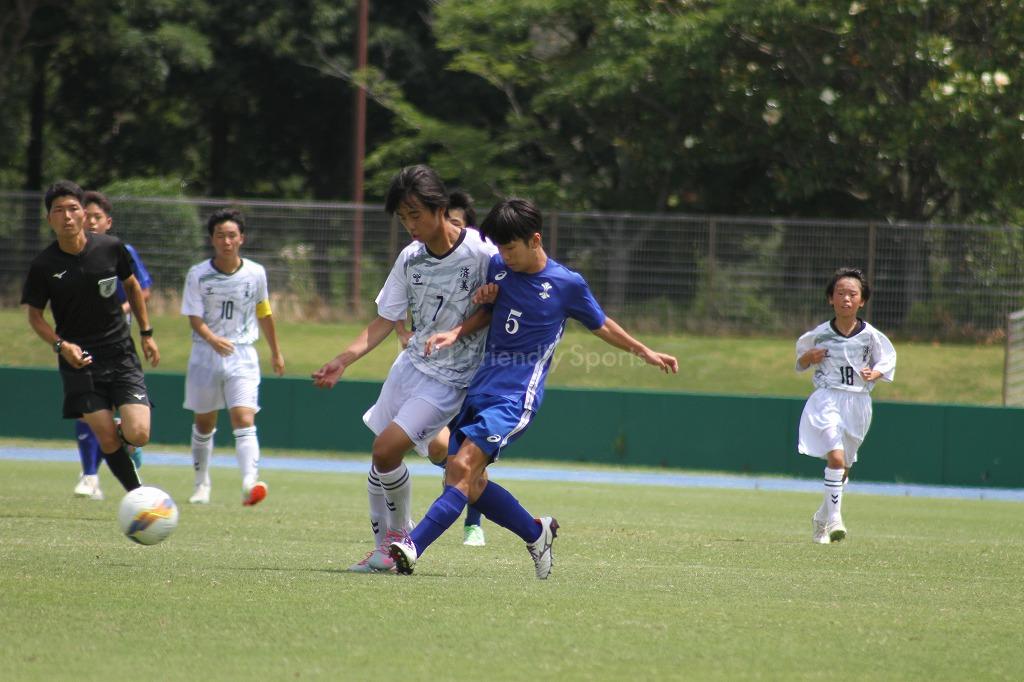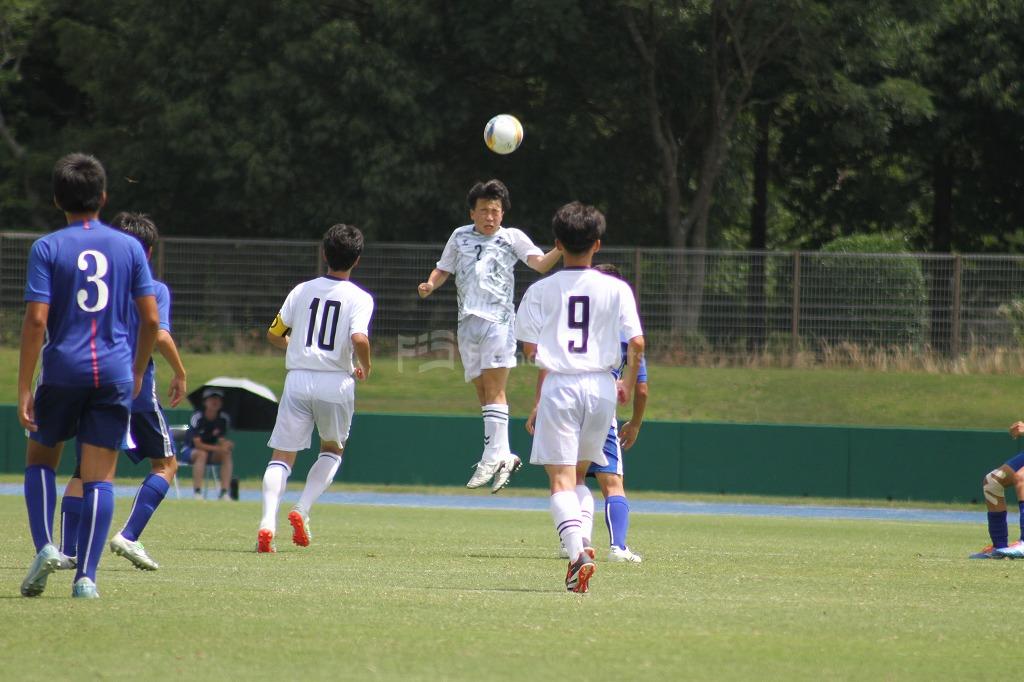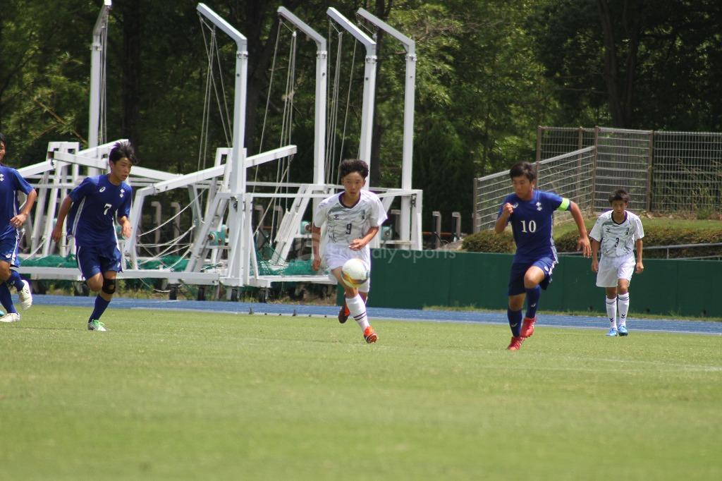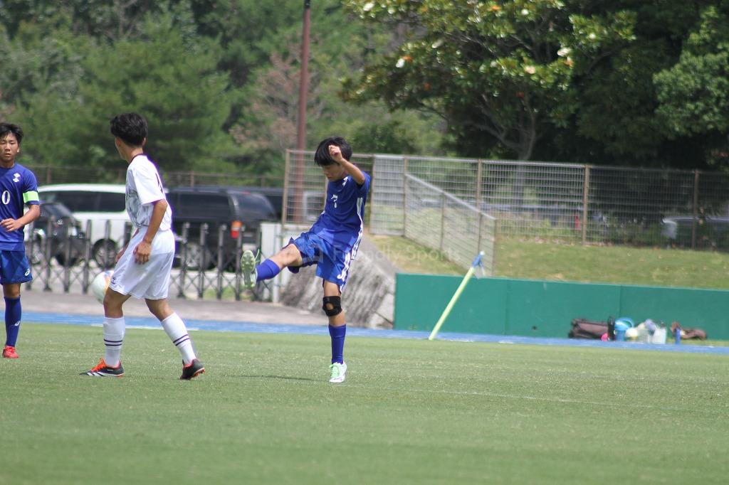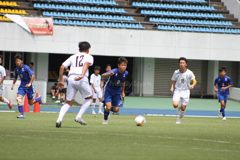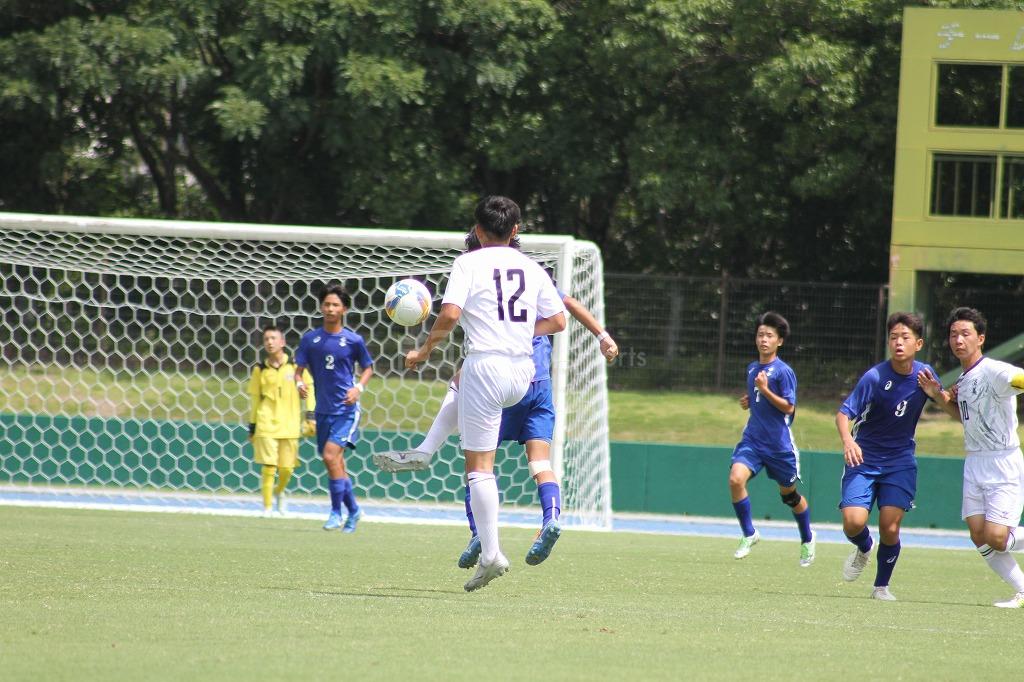 済美はハーフライン超えた付近で右サイド7番が受けドリブルし、遠目の位置から右足を振りぬく。鋭いシュートはGKの上を超え先制ゴールが決まる。