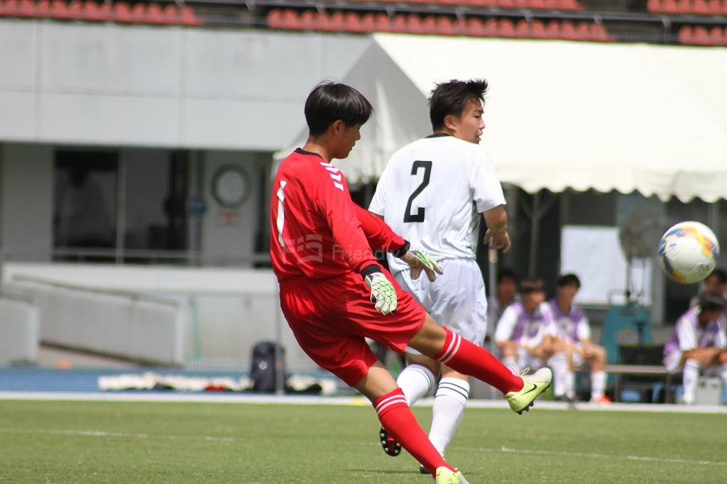 済美は後半ロスタイムに2番が絶好のチャンスでシュートするが、第二GK再三のファインセーブで防ぐ。