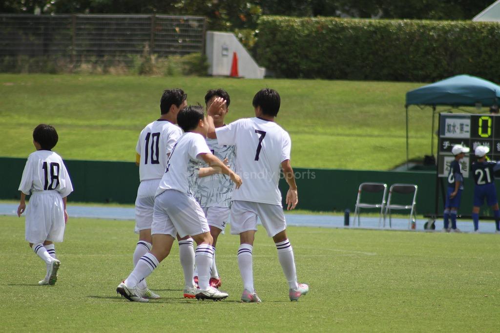 済美は左サイドを抜け出した2番。思い切りよいシュートを放ち、気持ちのこもったゴールを決める。