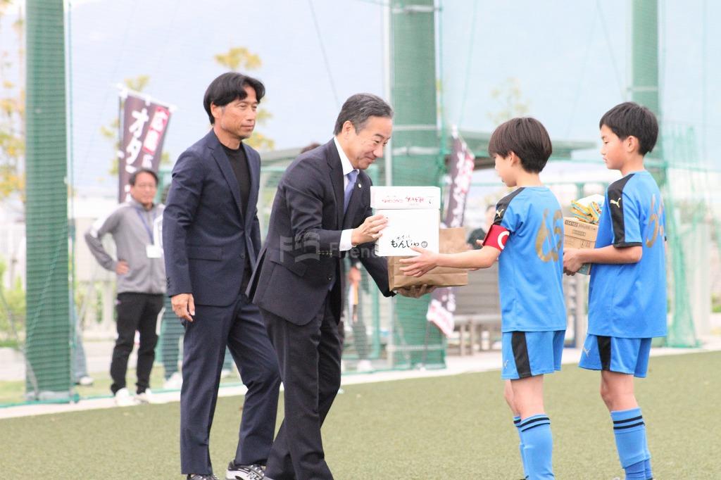 開幕に先立ち、大会スポンサーのオタフクソース株式会社から選手へ参加賞、そして来賓として足を会場に足を運び選手たちへエールを送ります。