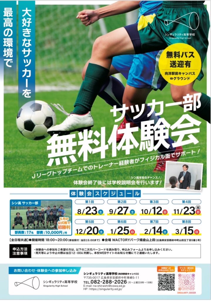 シンギュラリティ高等学校サッカー部体験会及び練習参加のお知らせ