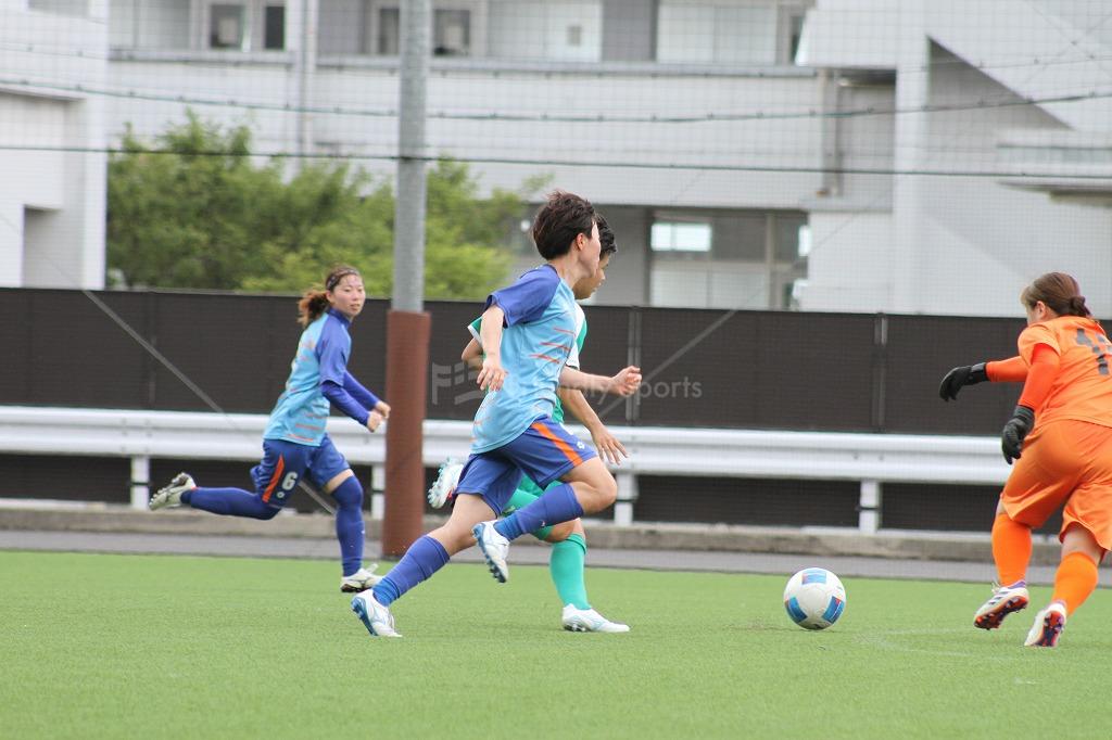 AICJは立ち上がりから相手陣内に入り、猛攻をしかけ相手にボールを与えない。