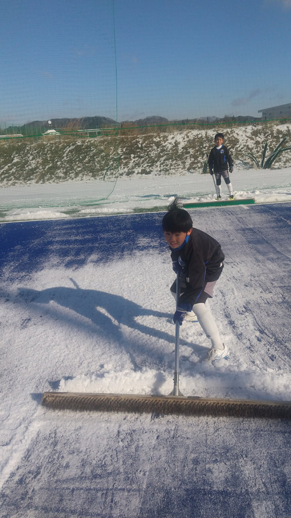 ジュニア5年生2025年2月8日 *リトル交流会でした。雪かきをした、試合開始。今日は、このカテゴリーだけ、試合ができました。試合後の写真です。 *試合前の雪かき、みんな、しんどいけど、楽しそうでした。写真は、W中。