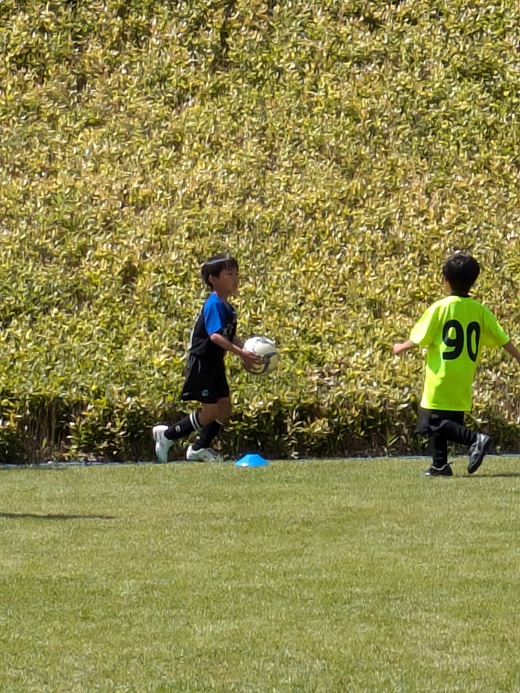 *バンブーの芝生で、バンスポと練習試合。上の学年の選手がいたのでいい経験となりました。