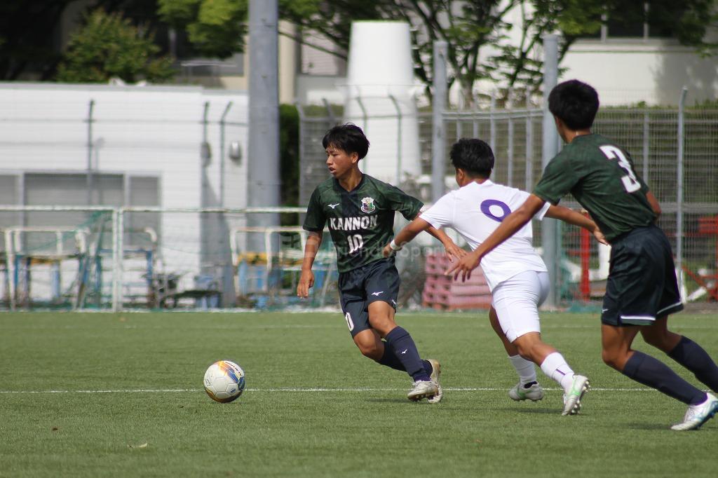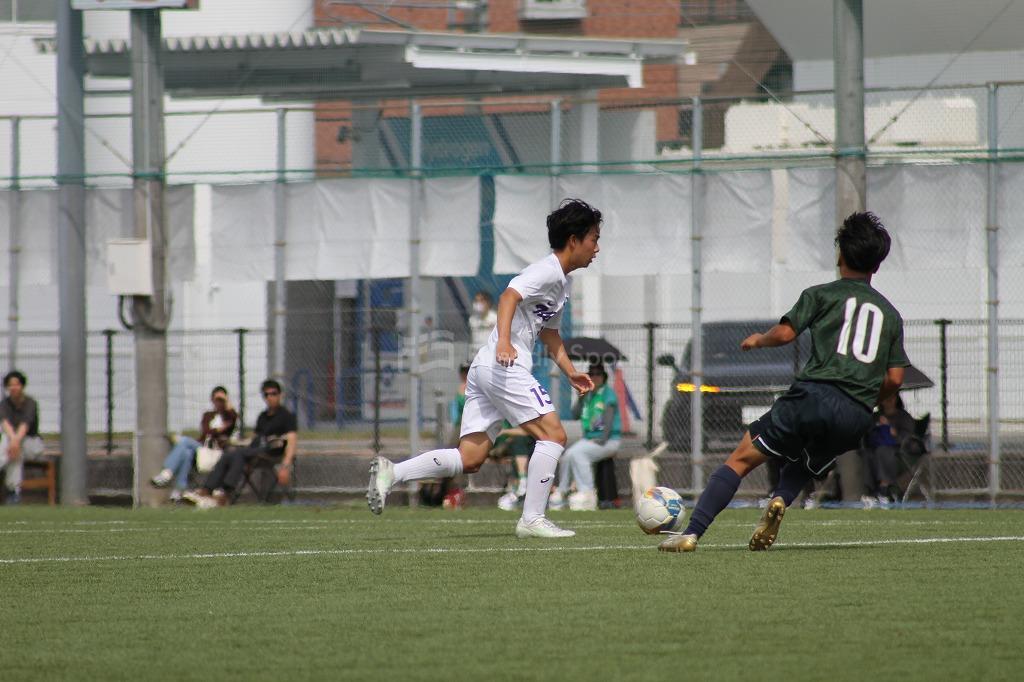 先制したのは広島翔洋。エリア内左でボールを受けた10番、相手からのプレッシャーの中、落ち着いてシュートとし先制点を決める。