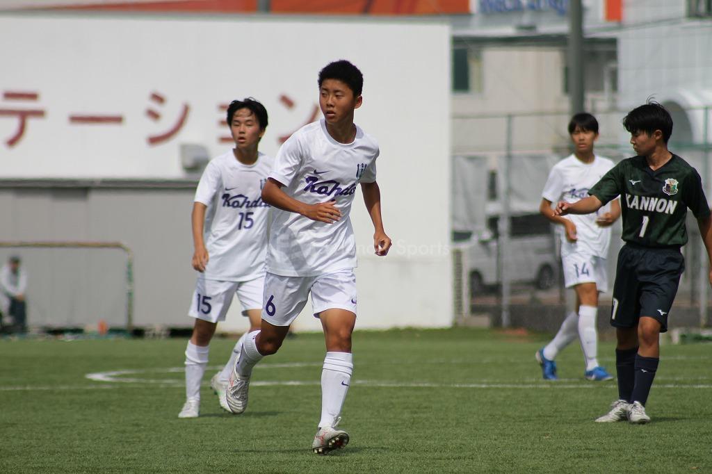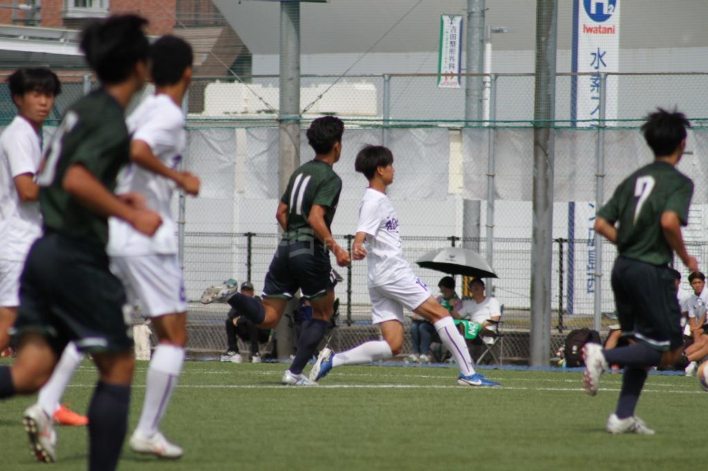 前半の早い時間で先制した広島翔洋は、右サイド28番のクロスに中央で2番が合わせ追加点。