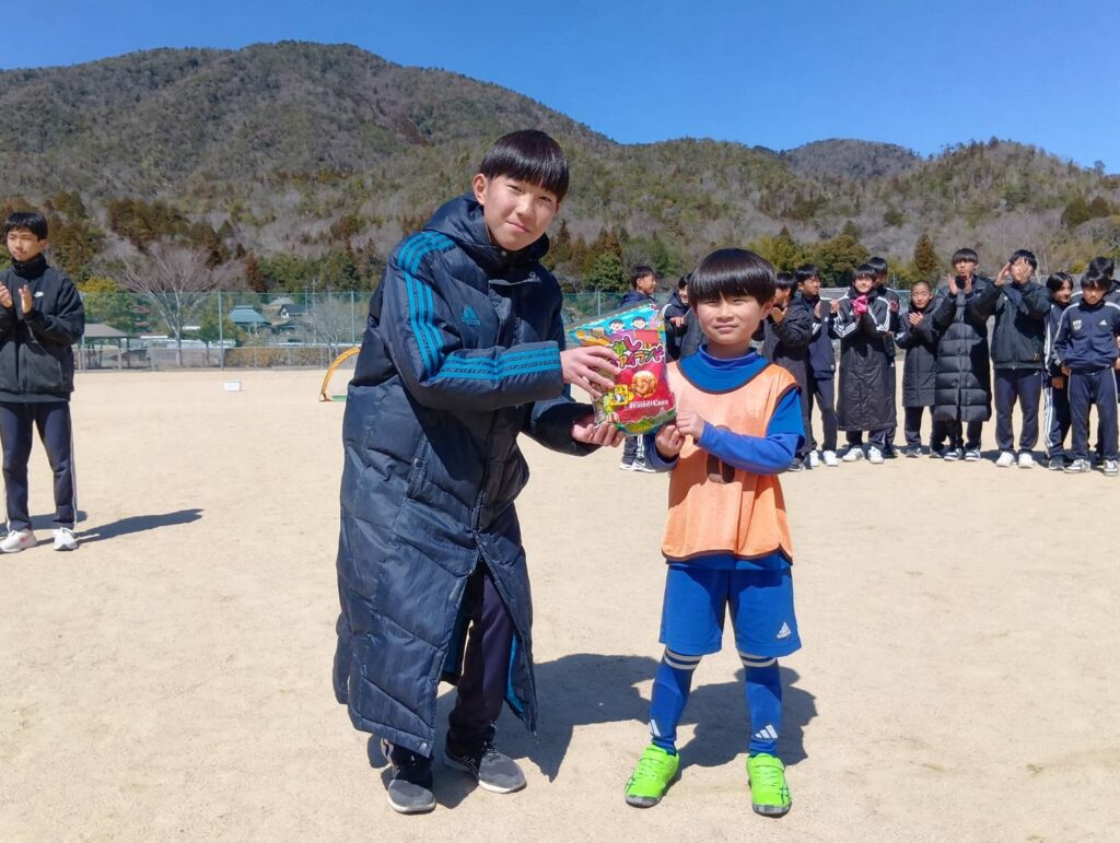 スタッフ、中学生選手間で優秀選手を選出させていただきました。選ばれた選手の皆さんにはアディダス様よりTシャツの贈呈です。
